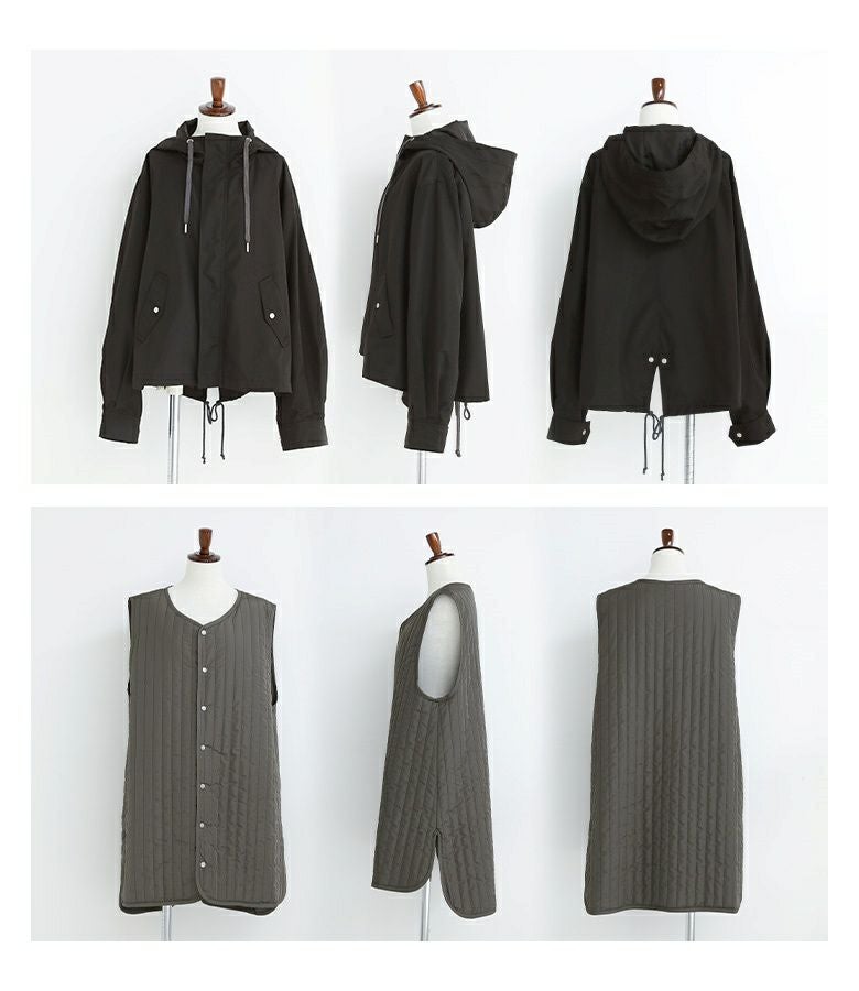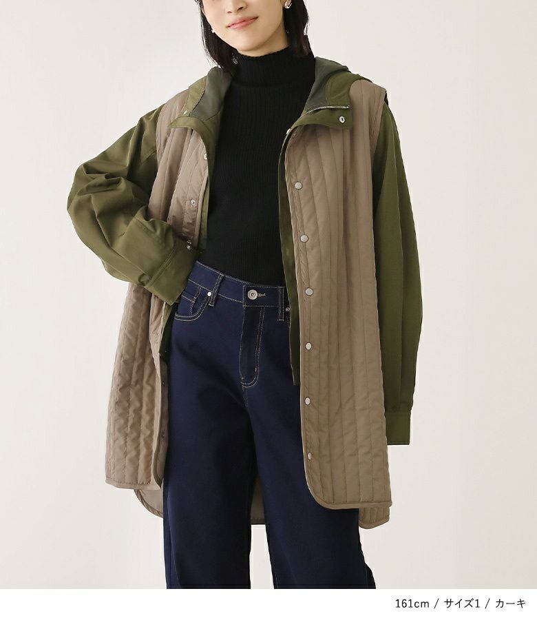 ジャケットの着丈はヒップ下少し見える位。余裕を持って前を閉めて着用できました。
