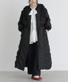 MA-1風のデザインとフリルディテールを組み合わせた中綿入りロングコート。ウエストはややシェイプさせ、リブ使いでメリハリをつけることで大きく見えすぎないようにデザインしました。フリルディテールを取り入れることでカジュアルさの中にロマンティックな要素をプラスしたアウターです。