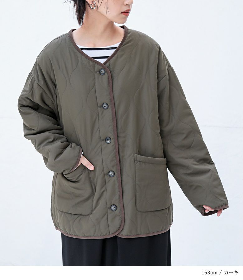 持ち運びしやすい超軽量のミディアム丈キルティングコート。