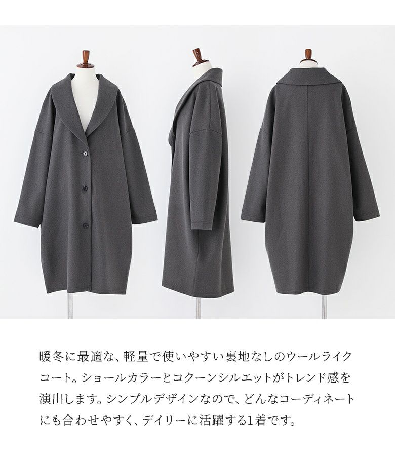【20%OFF】軽量で使いやすい裏地なしのウールライクコート。