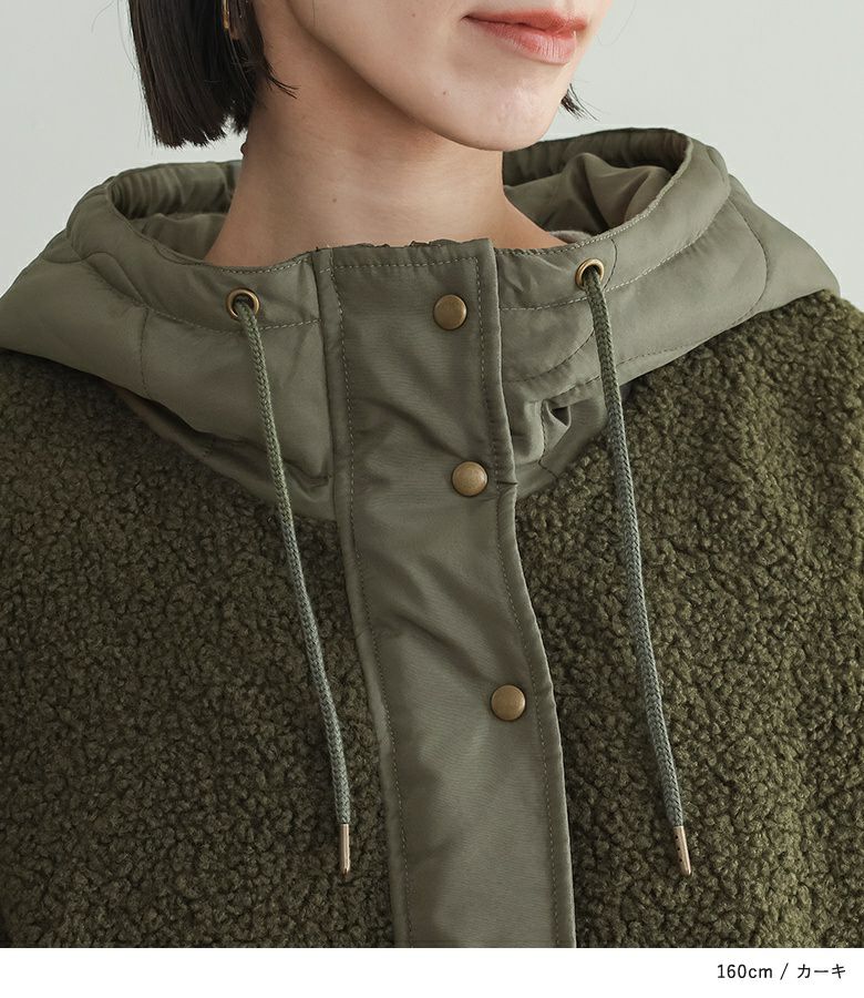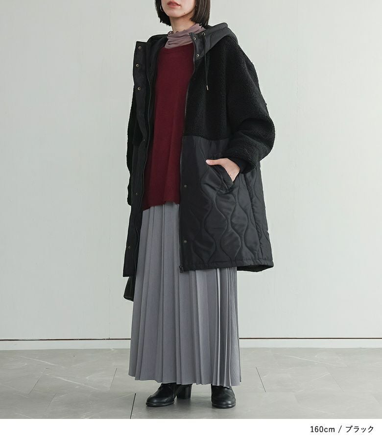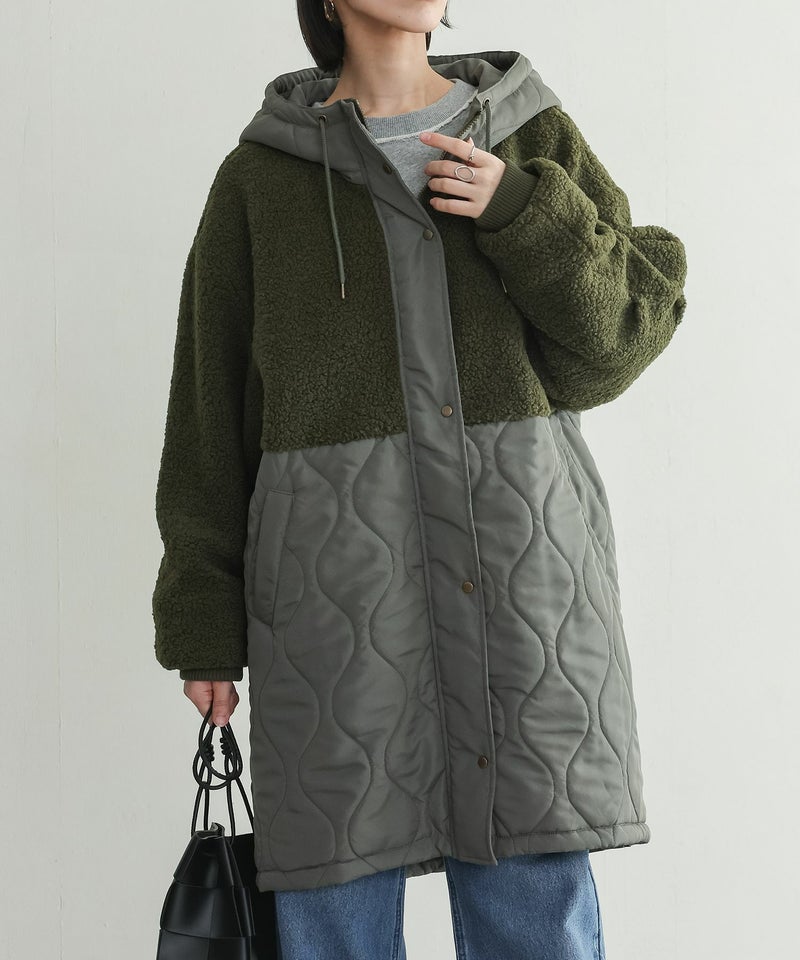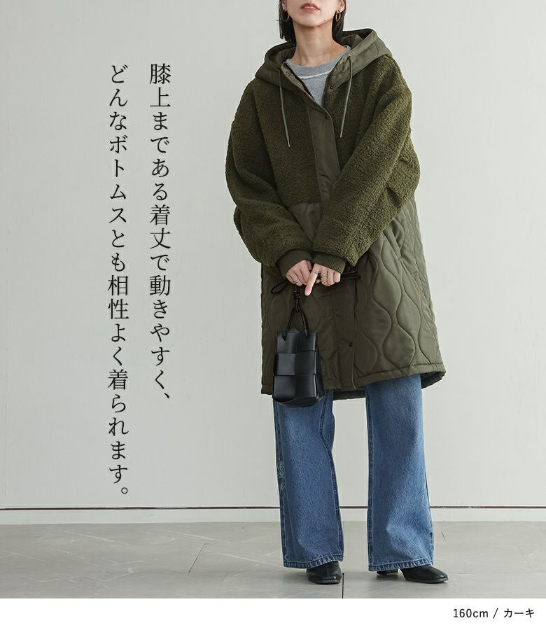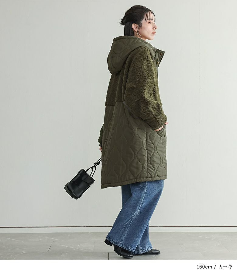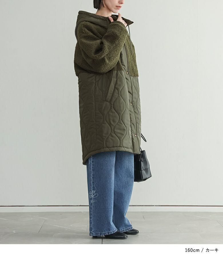 軽量で軽い着心地♪ボアとキルティングの異素材切替デザインコート。