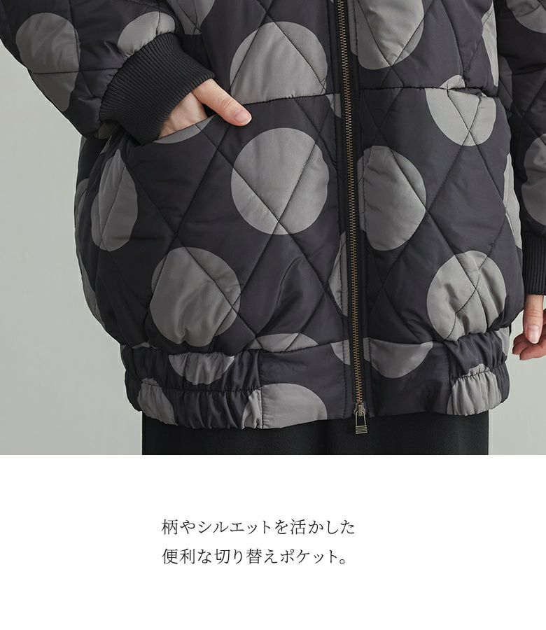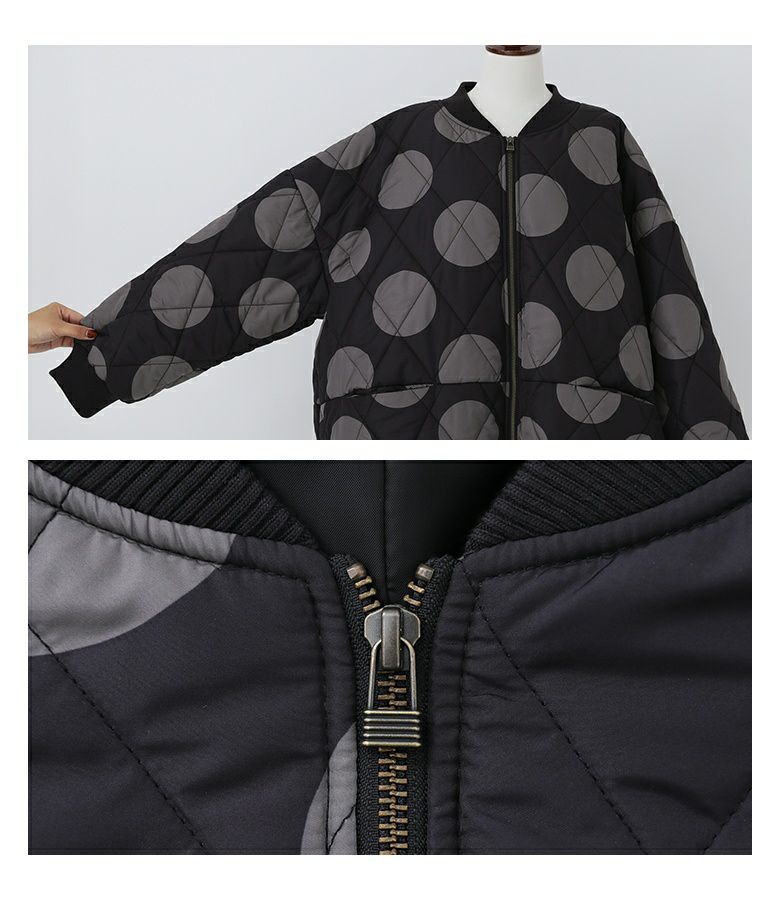 大きめドット柄が目を惹くキルティングブルゾン。