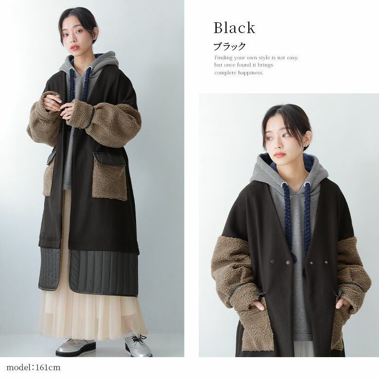 メルトン生地×ボア×キルティングを組み合わた異素材MIXデザイン。柔らかく軽い素材感にしっかり裏地付きだから快適に着用いただけます。