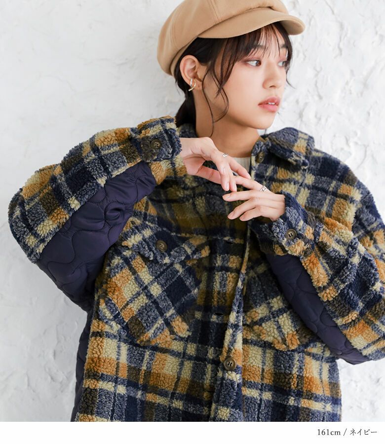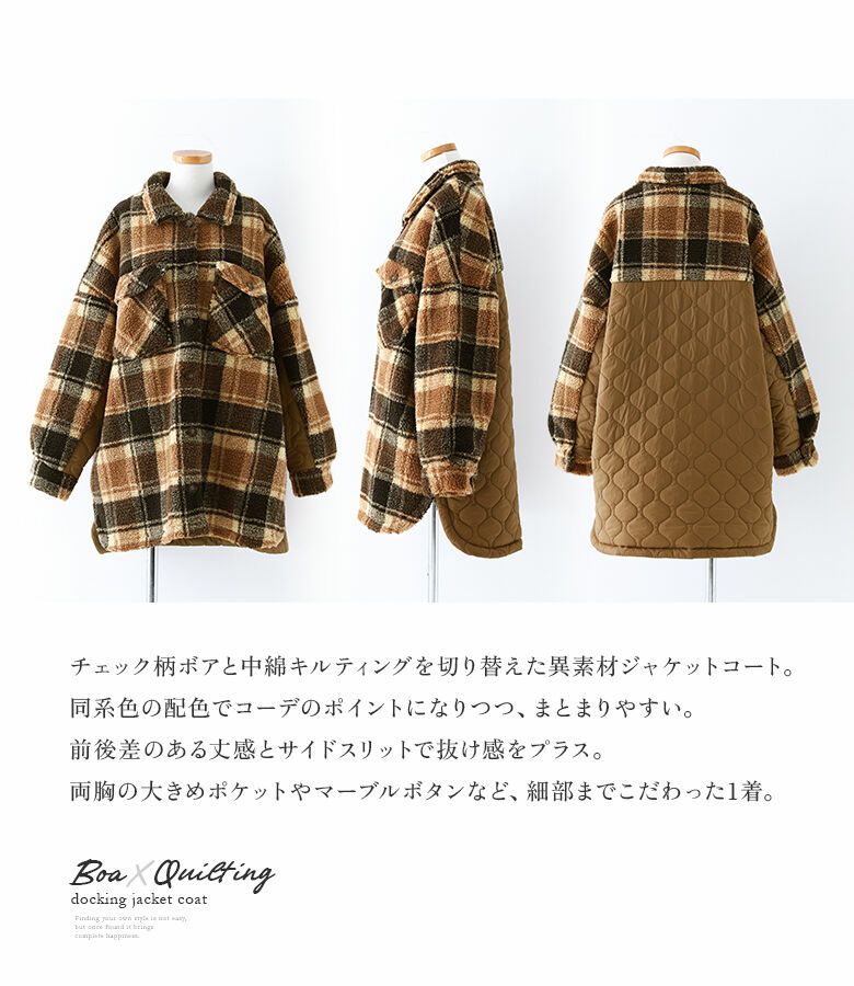 『チェックボア×キルトドッキングジャケットコート』
