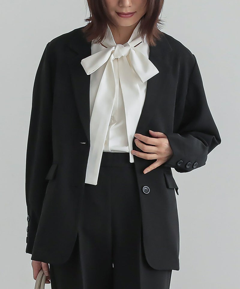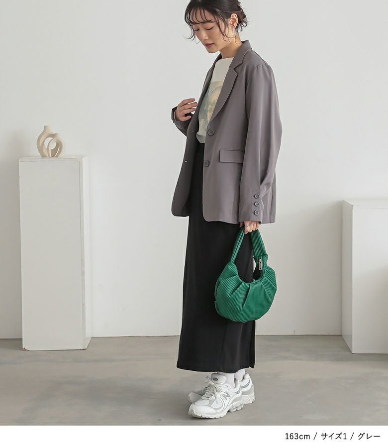 薄手のニットを着られるぐらいのゆとりで着られました。袖のタックがさりげなくオシャレに見せてくれます。