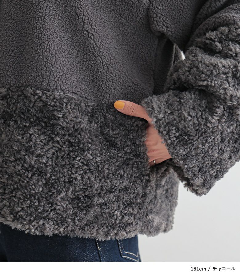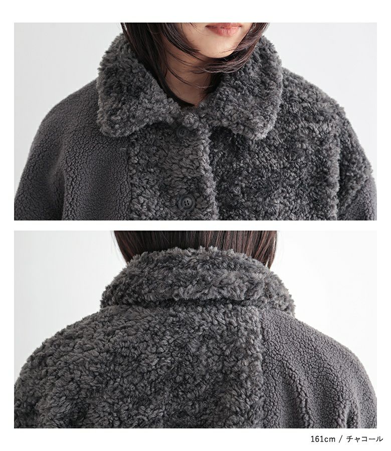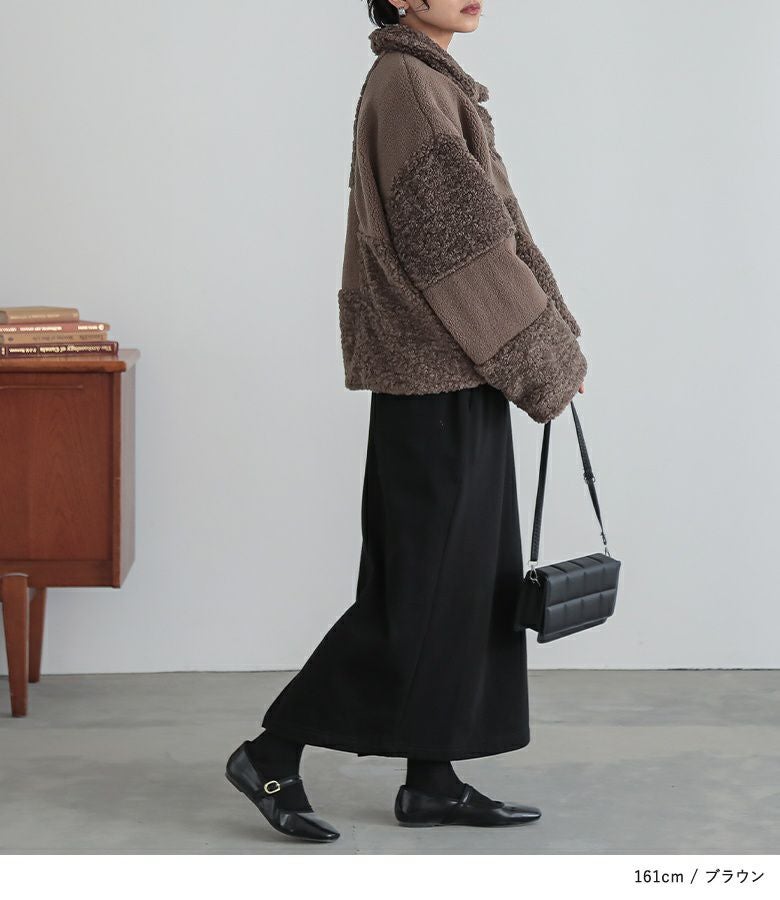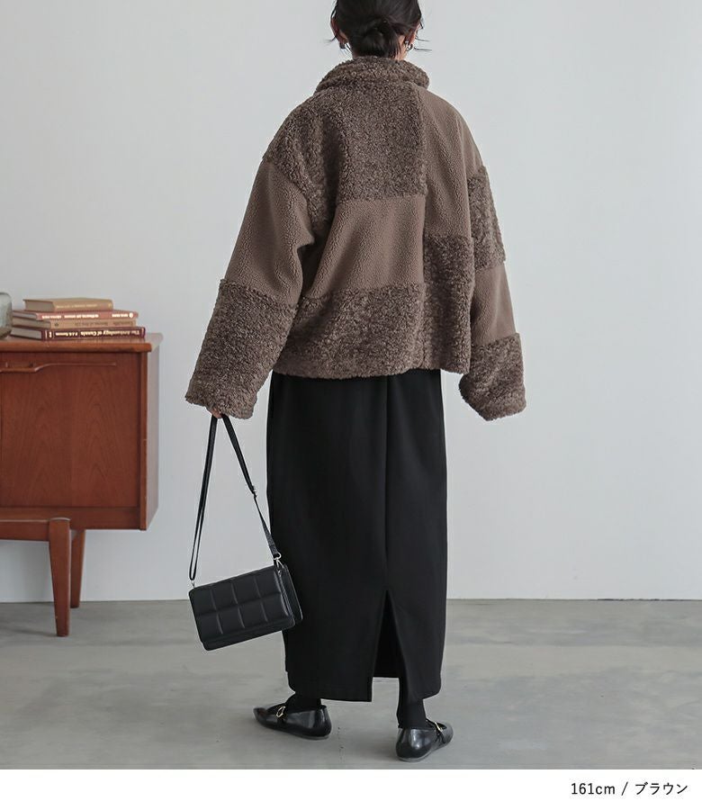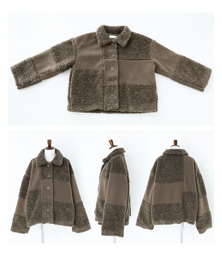 2種類のボア生地でパッチワークデザインにしたゆるっとラフなジャケット。