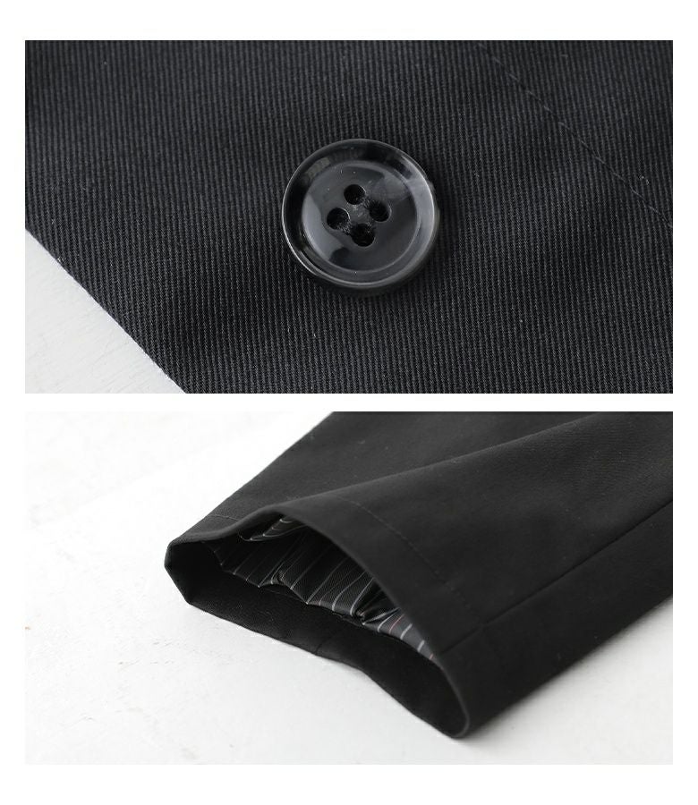 スーツ生地でシャキっと見えていいです!前のボタンは難解なので開けっ放しで羽織できてます。白Tにジーンズとかシンプルな洋服にとても似合うと思いました☺️