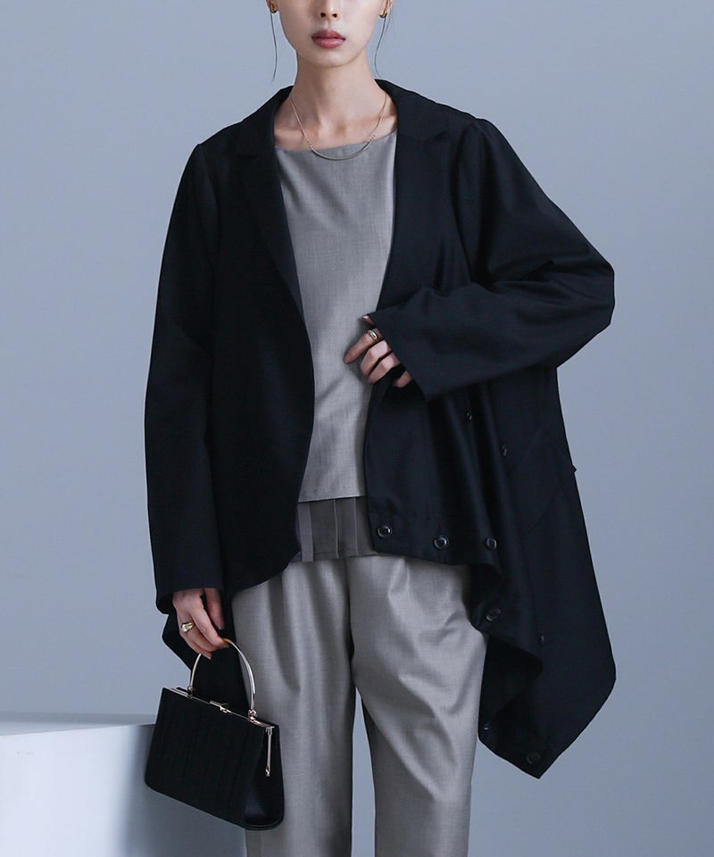 いつものコーディネートにさっと羽織るだけでモードな雰囲気に仕上がる一着。オケージョンやよそゆきスタイルのシャツ・ブラウス・ワンピースにも合わせていただける、優秀ジャケットです。