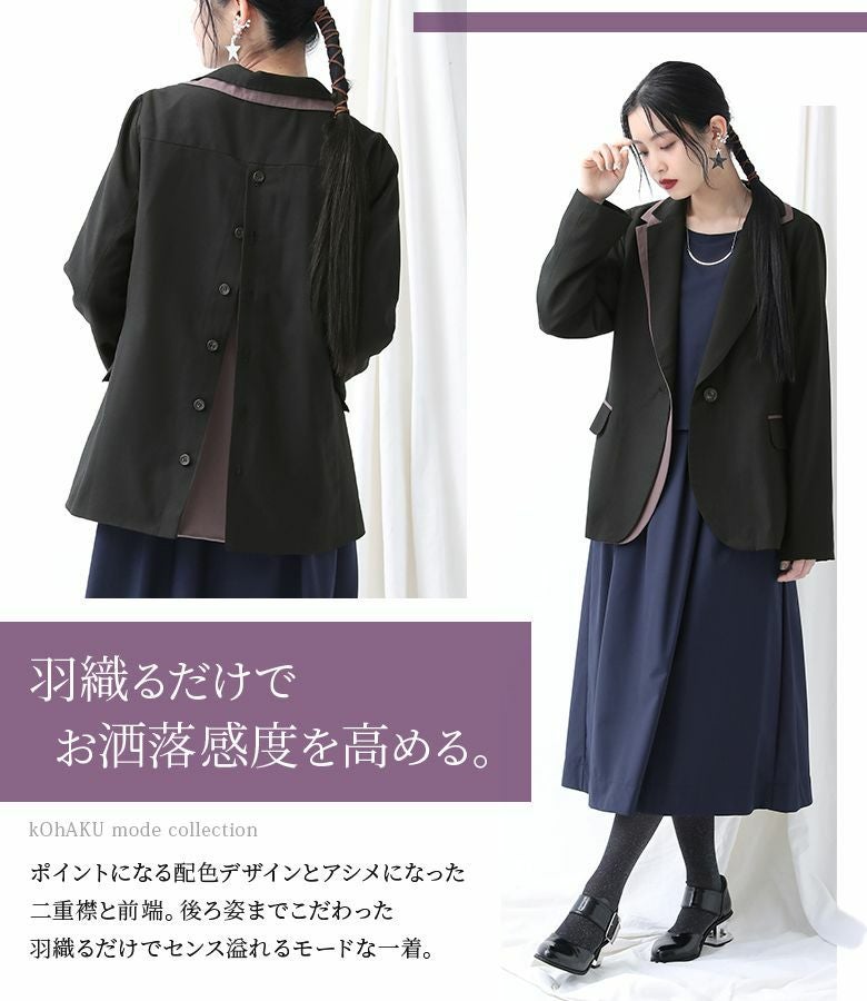 【送料無料】『kOhAKUバイカラーアシンメトリージャケット』