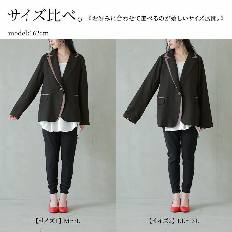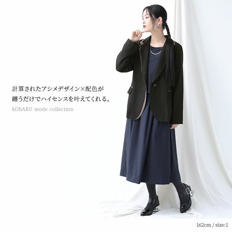 選べるM~3Lサイズ展開!特別感漂うアシメデザイン配色ジャケット。