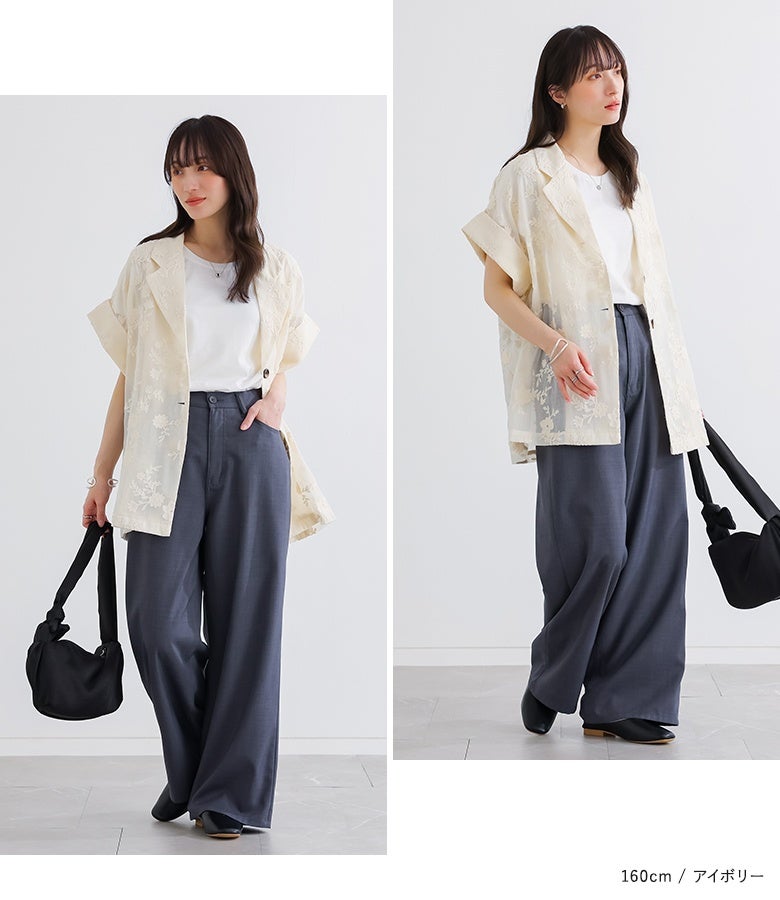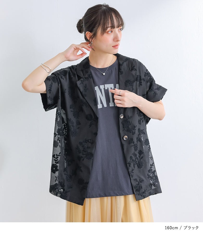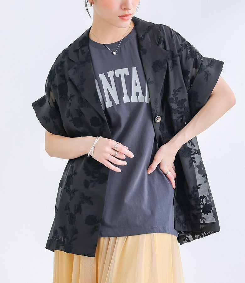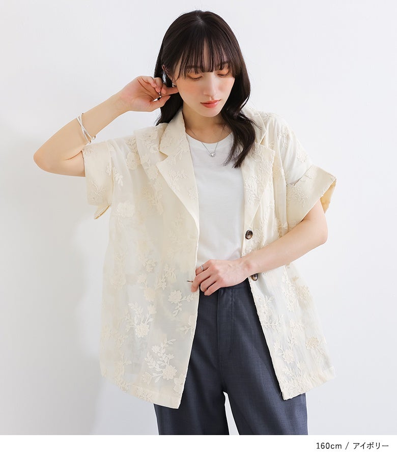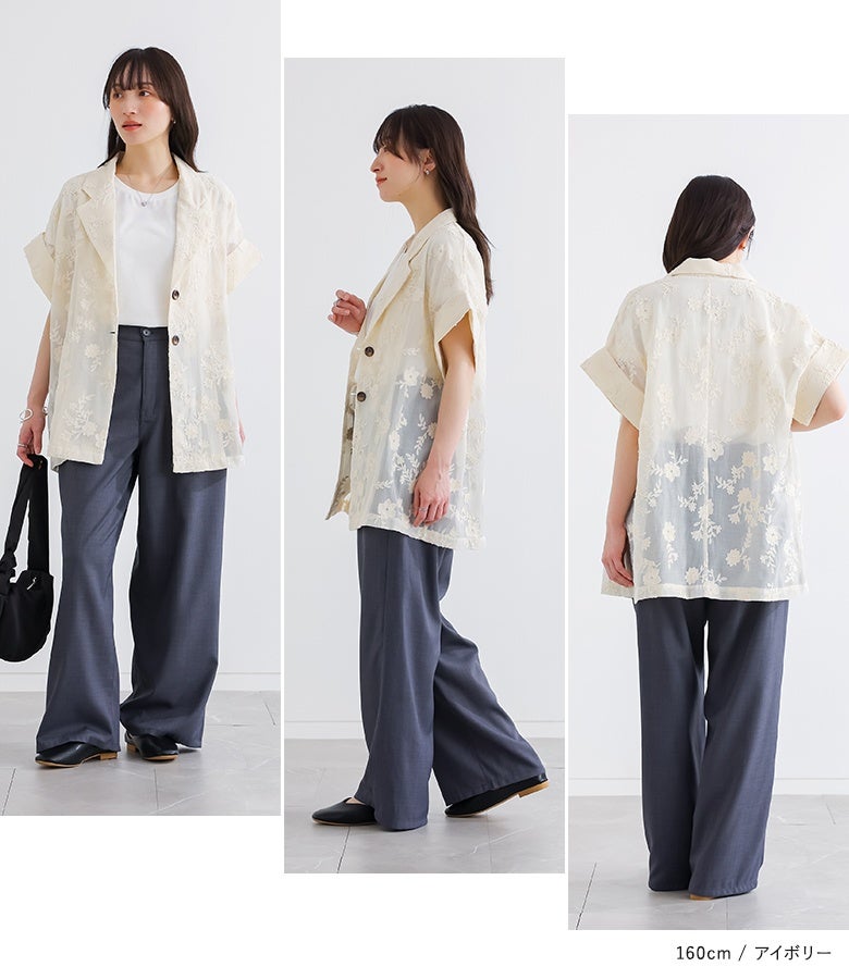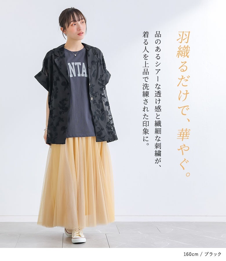 羽織るだけでコーデが華やぐシアー刺繍ハーフスリーブジャケット。