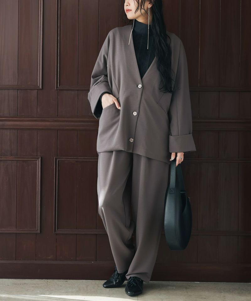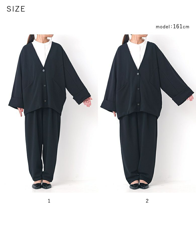 【2】 ◆ジャケット 袖丈:手の甲にかかる位 着丈:太もも真ん中より下位 ◆パンツ 着丈(ウエスト穿き):かかと位 ウエスト:ゆったり