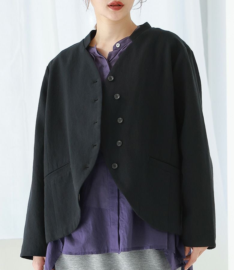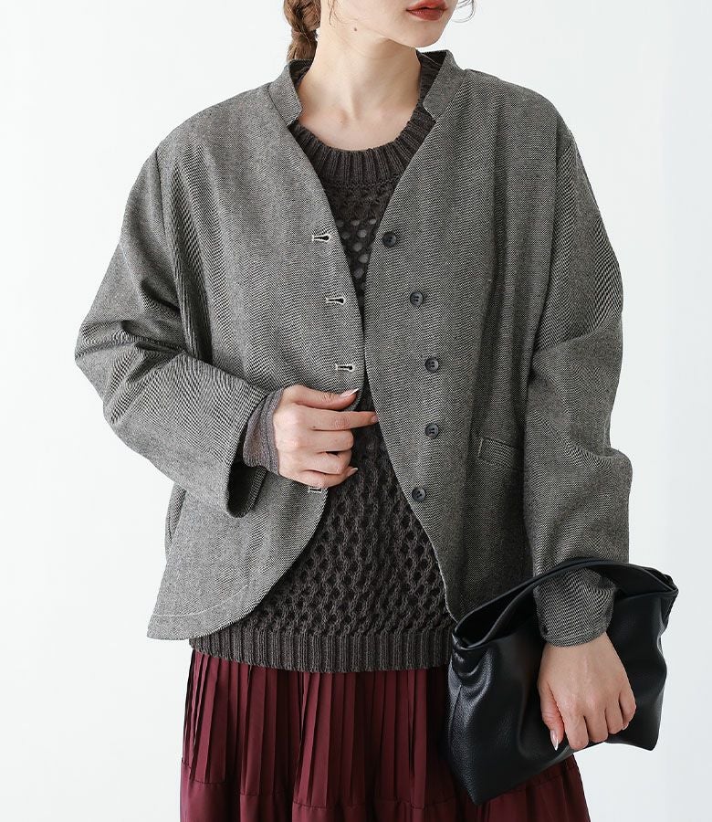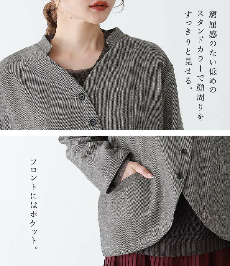 『30%OFFセール★OUKA SELECT綿麻先染フロントカーブジャケット』