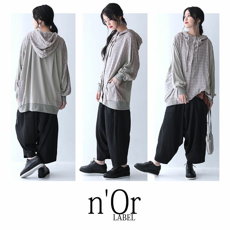 『n'OrLABELチェック柄切替ドルマンパーカー』