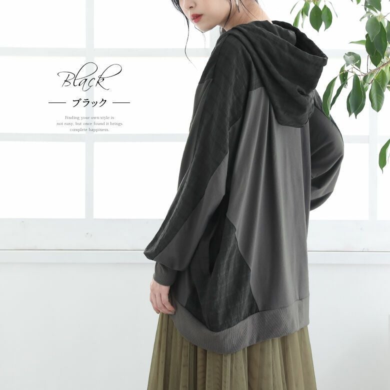 ドルマンシルエット&切り替えデザインがお洒落を生み出すボタン付きパーカー♪