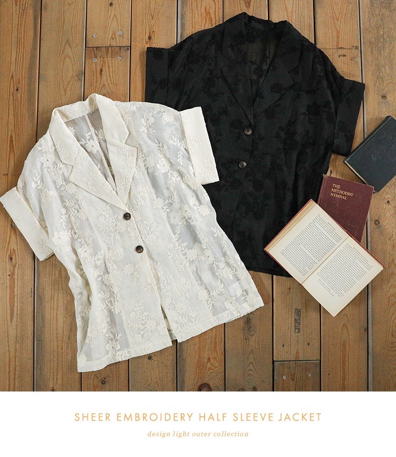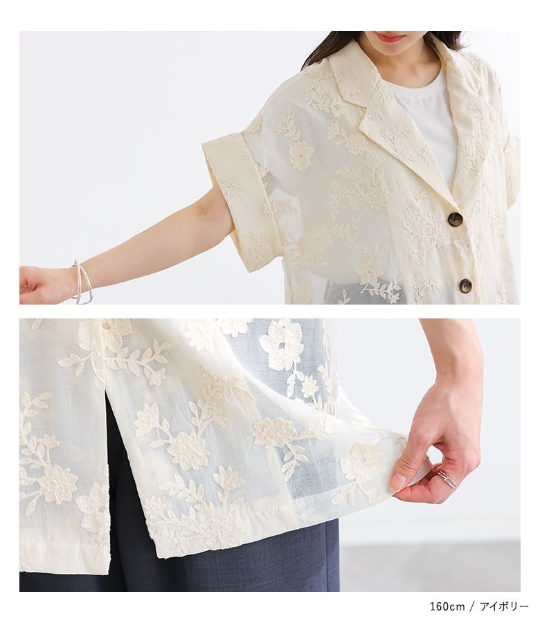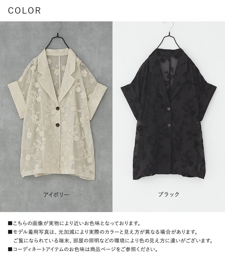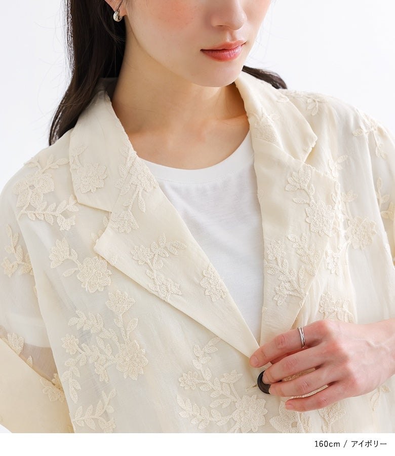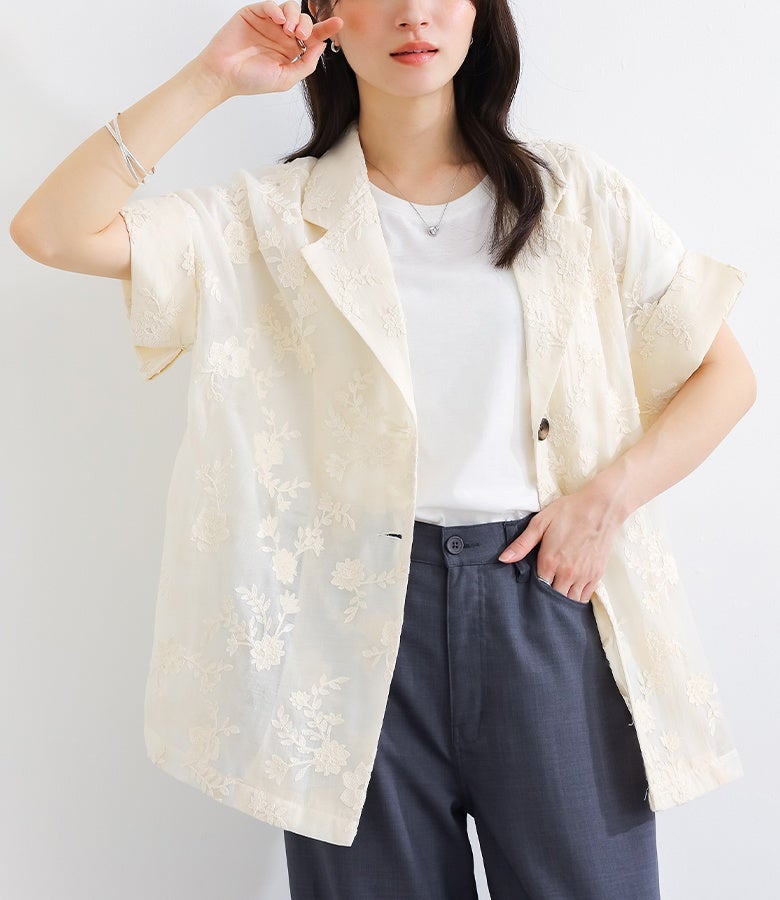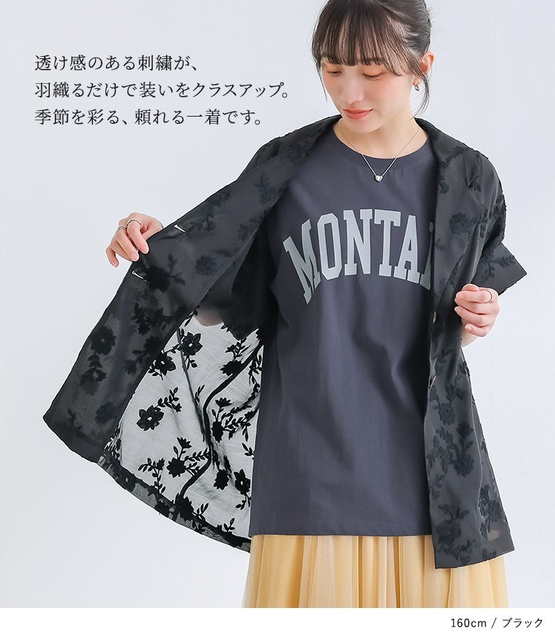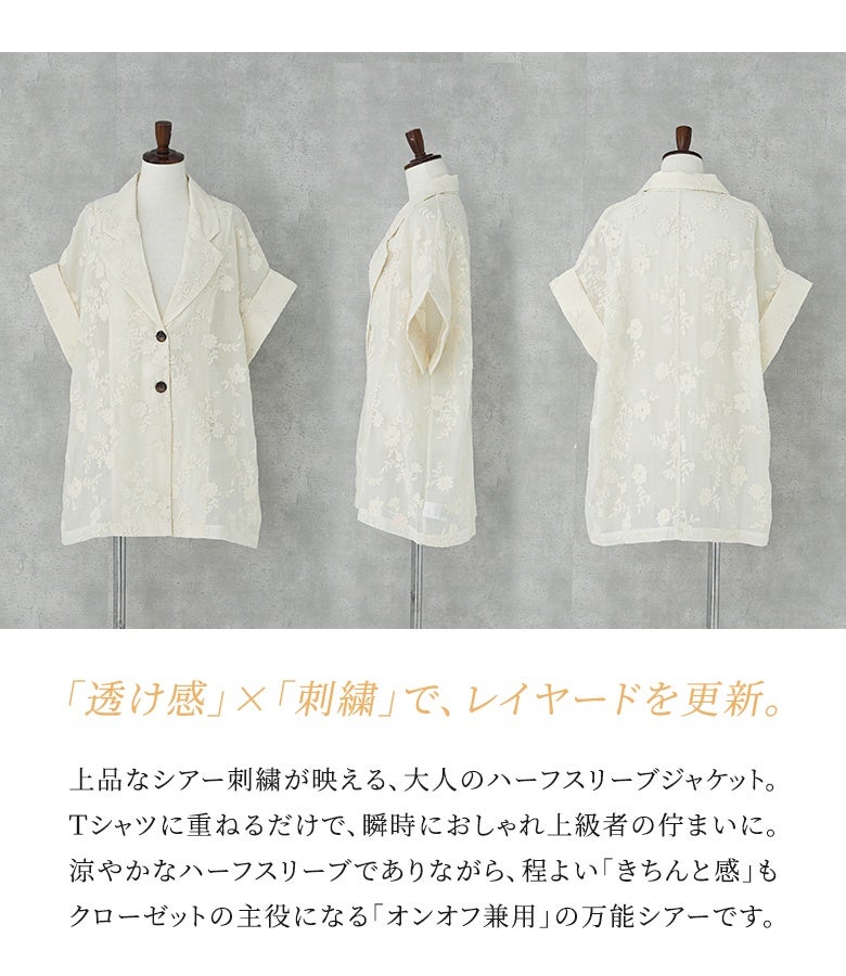 他の画像を見る 羽織るだけでコーデが華やぐシアー刺繍ハーフスリーブジャケット。 『シアー刺繍ハーフスリーブジャケット』【メール便不可】【20】 ¥ 4,590 税込 販売開始前です。 販売期間 2026/04/17 10:00 〜 2027/04/03 23:59 (0)