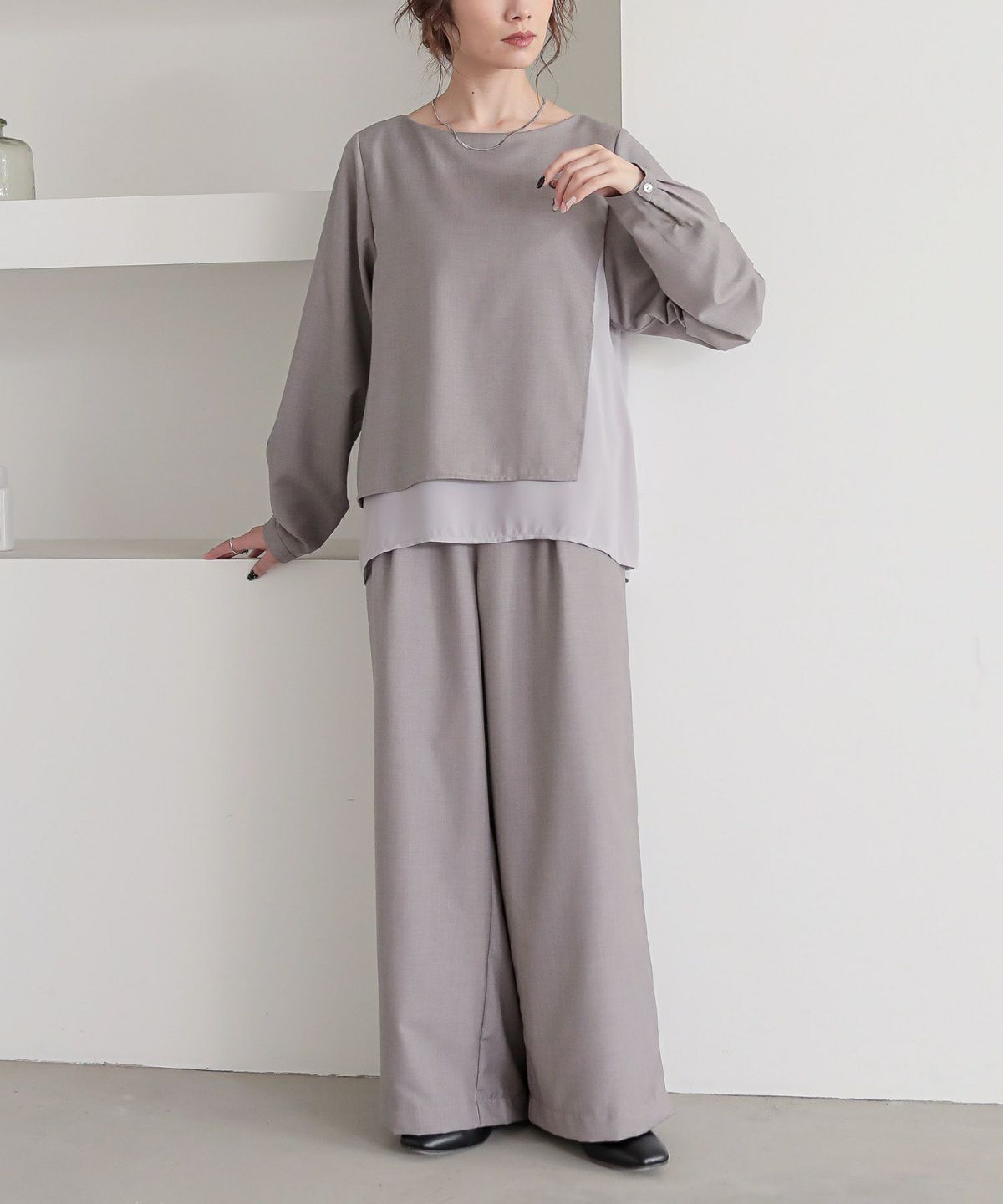 他の画像を見る 選べるM~3Lサイズ展開!フォーマルもカジュアルもお任せセットアップ♪ 【送料無料】『n'OrLABELシフォンドッキングセットアップ』【メール便不可】【20】 ¥ 9,980 税込 4.13 (15)