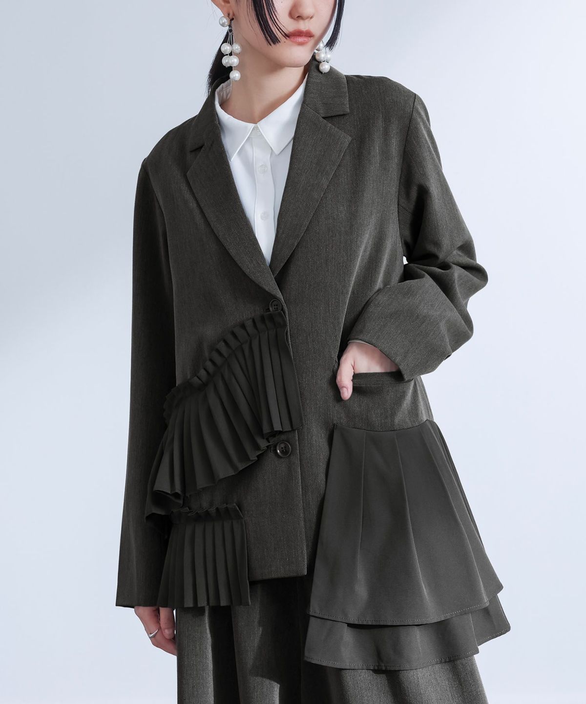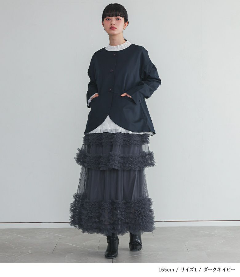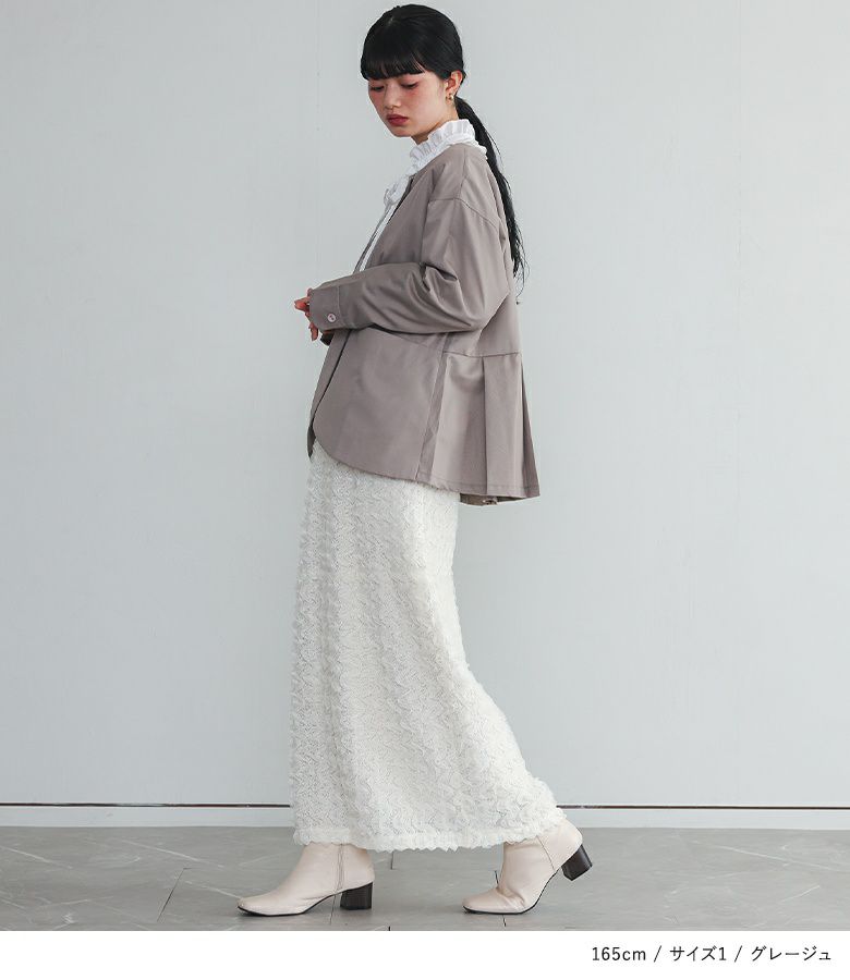他の画像を見る 選べる2サイズ展開!異素材のフリルとプリーツを組み合わせた個性あふれるジャケット。 【送料無料】『kOhAKUプリーツフリルドッキングジャケット』【メール便不可】【30】 ¥ 9,980 税込 (0)