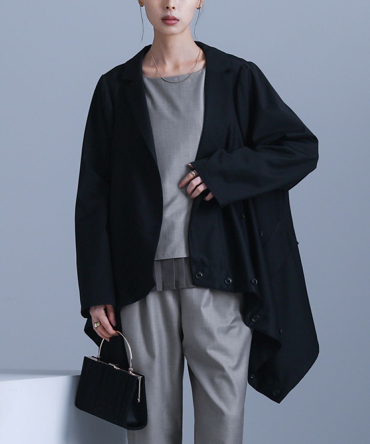 他の画像を見る 選べる2サイズ展開!シーンを選ばない着回し力のセットアップ。 【送料無料】『n'OrLABELノーカラーラウンドヘムジャケット×コクーンパンツセットアップ』【メール便不可】【30】 ¥ 9,980 税込 (0)