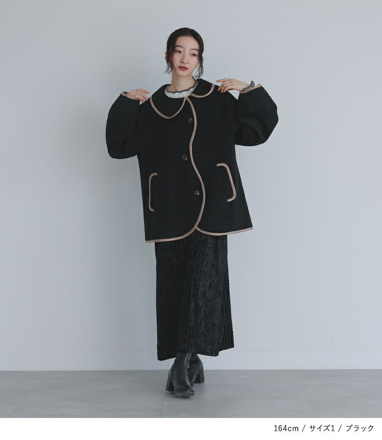 他の画像を見る フロントのウェーブラインが印象的なコート。 【送料無料】『somari imaginationウェーブラインパイピングコート』【メール便不可】【30】 ¥ 9,980 税込 5.00 (4)