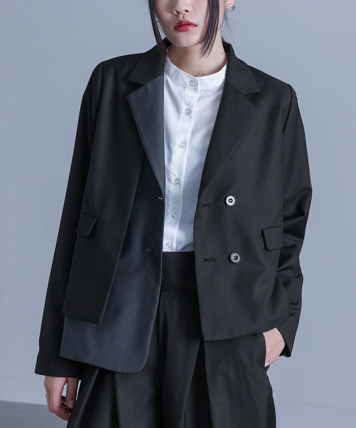 他の画像を見る 選べる2サイズ展開!右身頃が2枚重なったようなテーラードジャケット。 【送料無料】『kOhAKUアシメ配色テーラードジャケット』【メール便不可】【20】 ¥ 8,980 税込 4.00 (1)