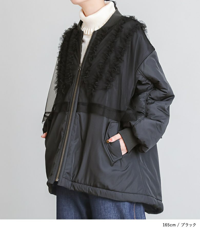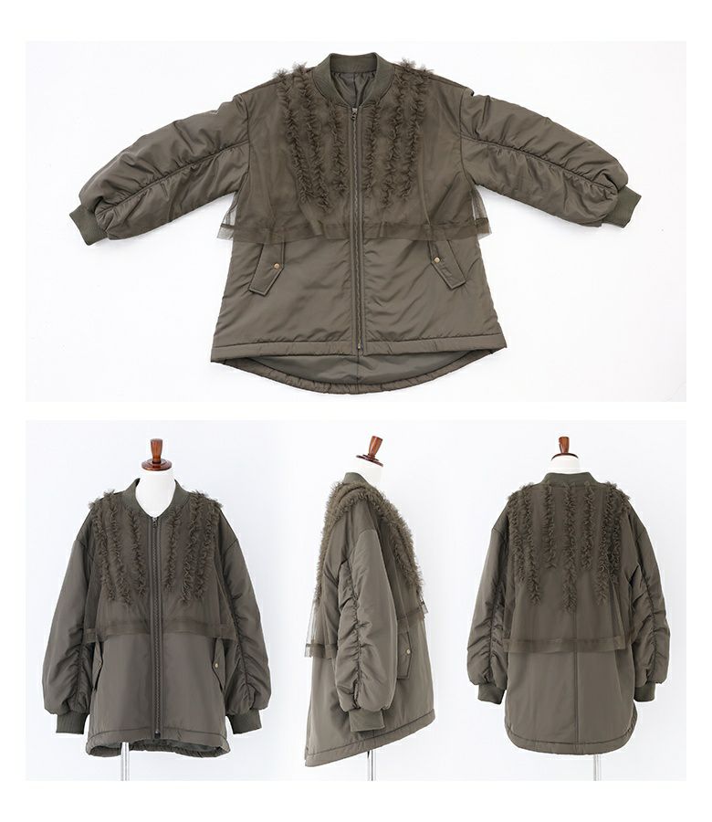 他の画像を見る チュールをレイヤードしたMA-1風のミドルブルゾン。 【送料無料】『somari imaginationチュールフリルMA-1中綿ブルゾン』【メール便不可】【50】 ¥ 12,980 税込 (0)