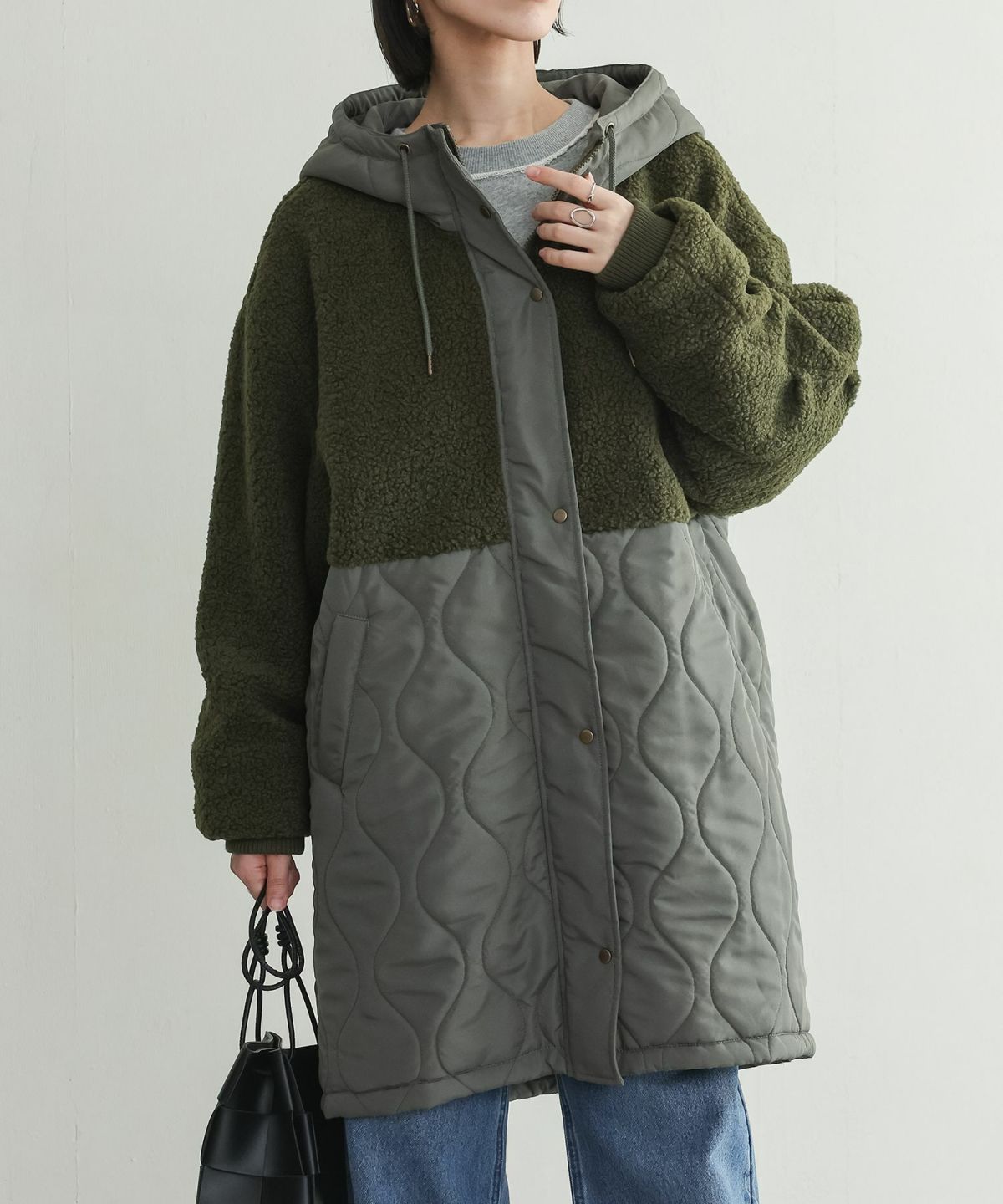 他の画像を見る 軽量で軽い着心地♪ボアとキルティングの異素材切替デザインコート。 【送料無料】『n'OrLABELボア切替キルティングミドルコート』【メール便不可】【50】 ¥ 9,980 税込 3.00 (1)