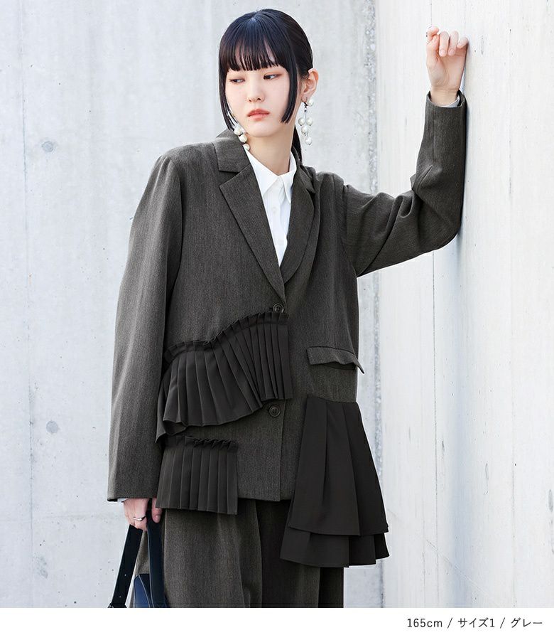 他の画像を見る 選べるM~3Lサイズ展開!個性的なモード感漂うプリーツアシメジャケット。 【送料無料】『kOhAKU異素材プリーツアシメジャケット』【メール便不可】【20】 ¥ 10,980 税込 4.67 (6)