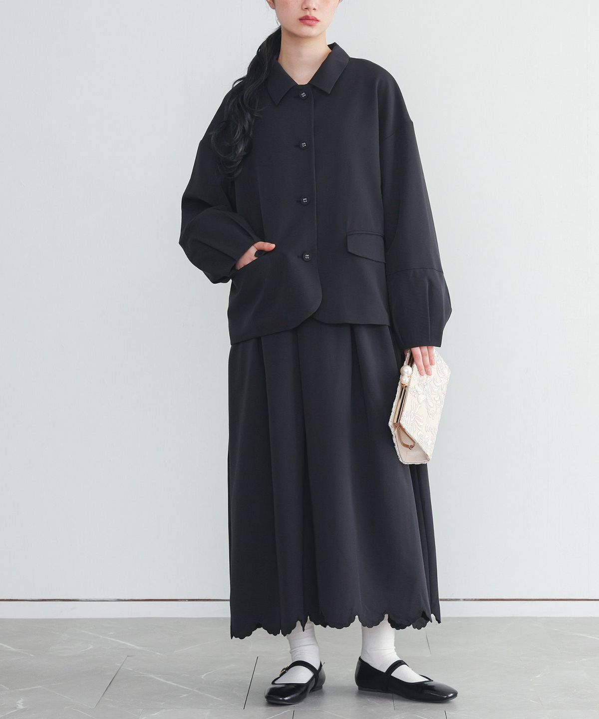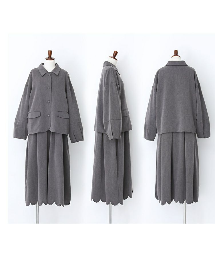 他の画像を見る 選べる2サイズ展開!ランタンスリーブのジャケット×スカラップ刺繍をあしらったワンピースのセットアップ。 【送料無料】『somari imaginationランタンスリーブジャケット裾スカラップワンピースセットアップ』【メール便不可】【30】 ¥ 14,980 税込 (0)