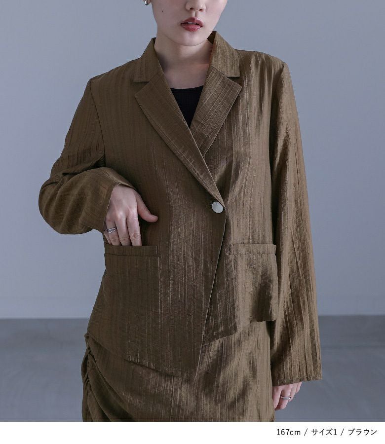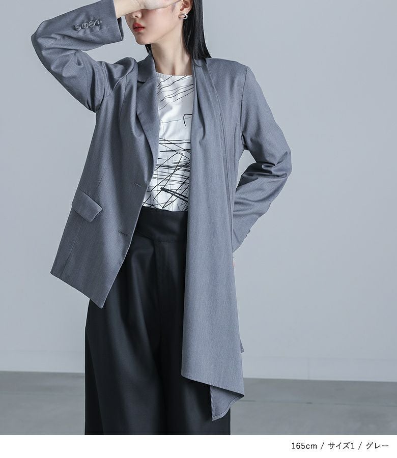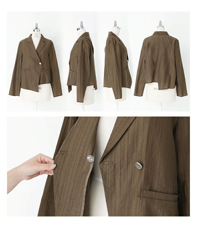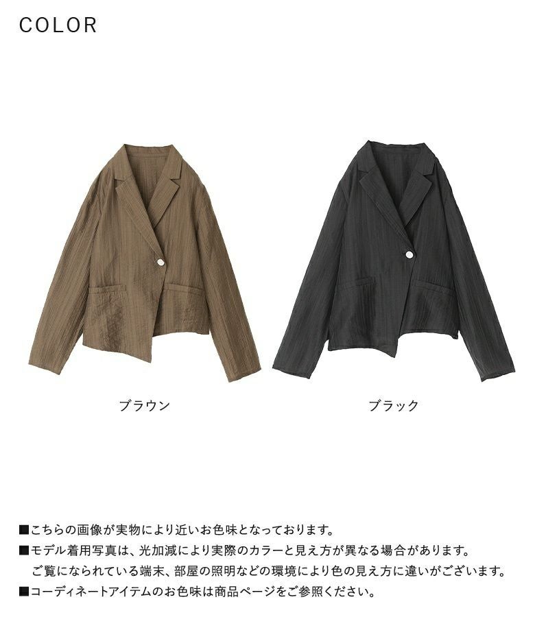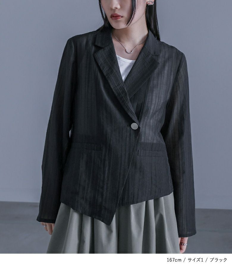 他の画像を見る 選べる2サイズ展開!シアーストライプ素材を使ったアシンメトリージャケット。 『kOhAKUシアーストライプアシンメトリージャケット』※メール便可※【10】 ¥ 7,980 税込 5.00 (2)