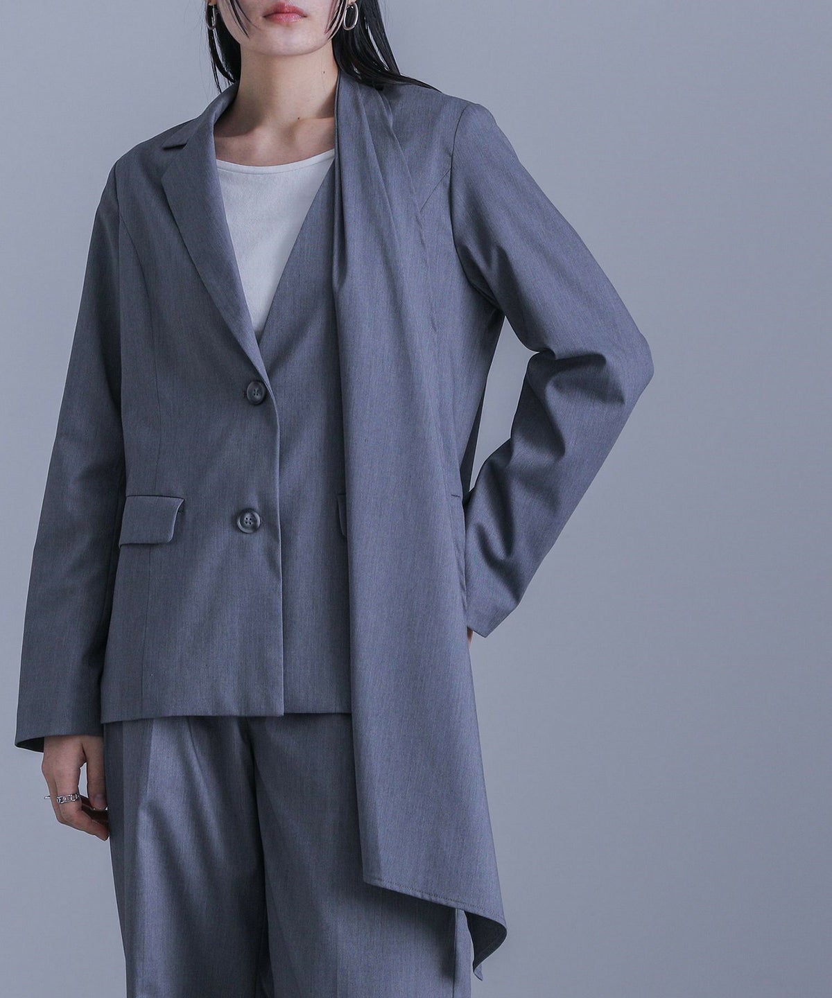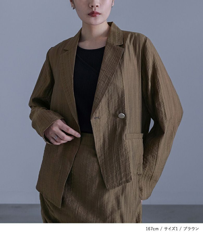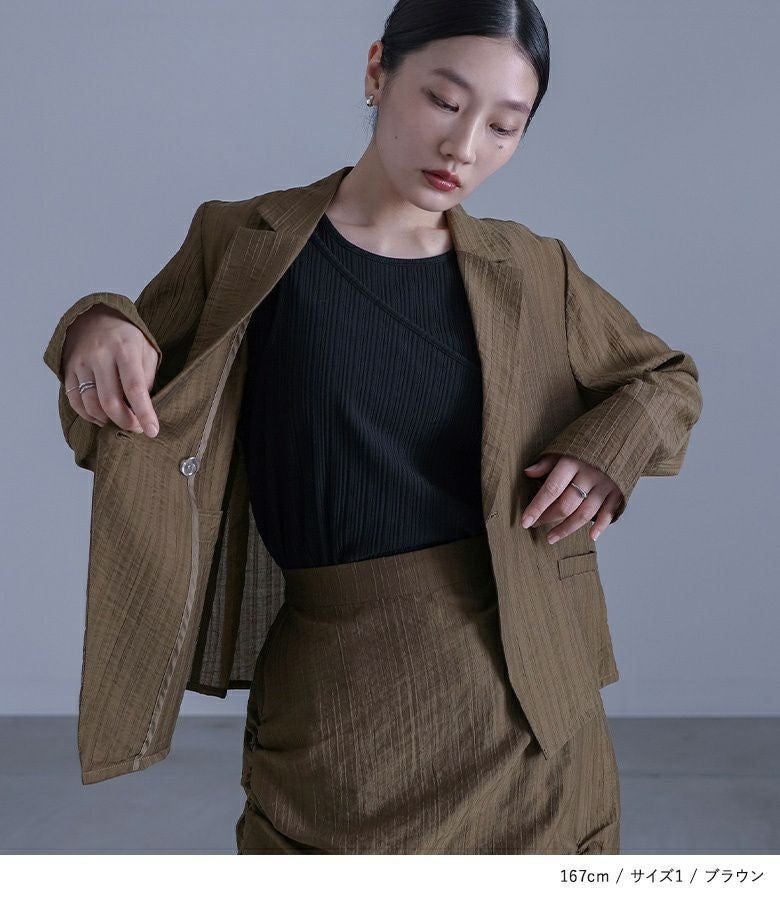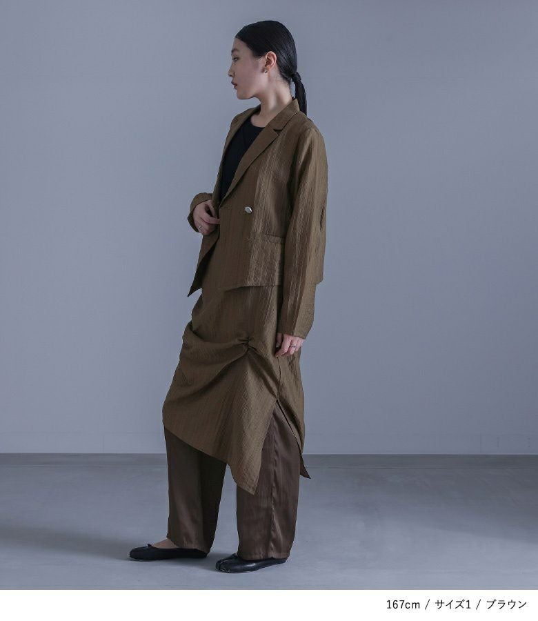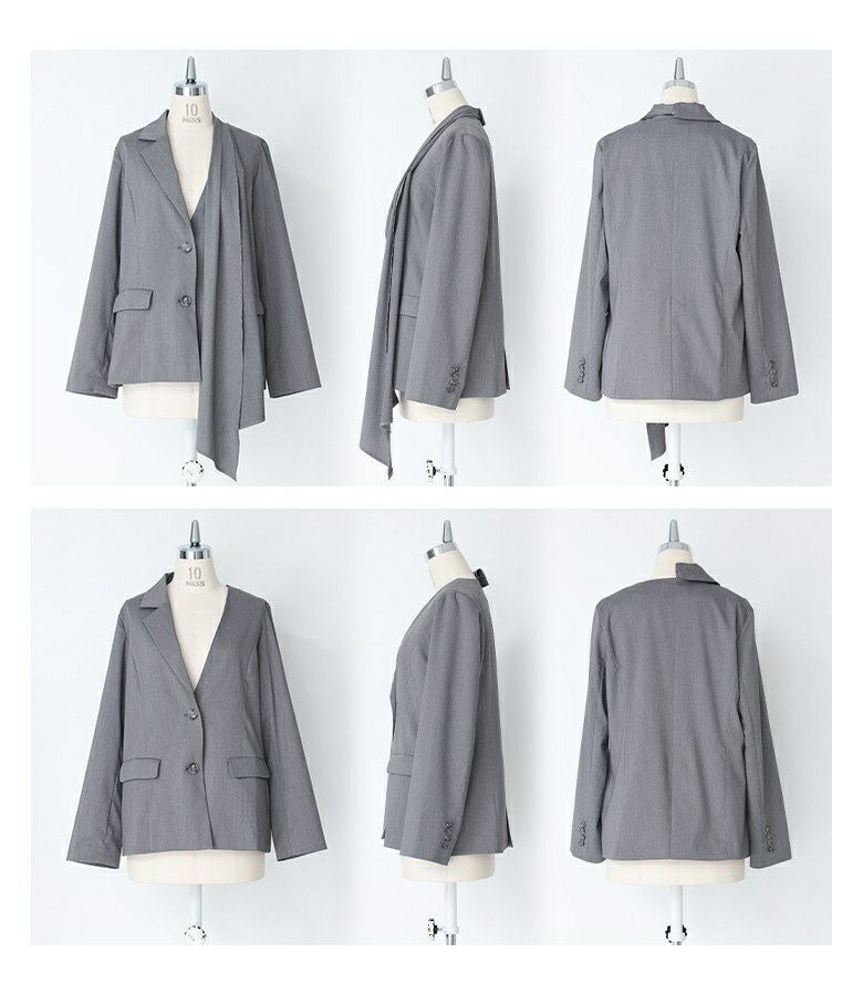 他の画像を見る 選べる2サイズ展開!シアーストライプ素材を使ったアシンメトリージャケット。 『kOhAKUシアーストライプアシンメトリージャケット』※メール便可※【10】 ¥ 7,980 税込 5.00 (2)