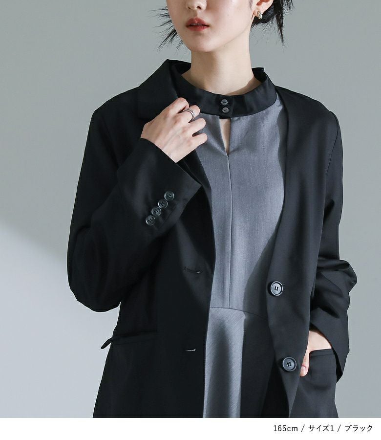 他の画像を見る 選べる2サイズ展開!異素材のパーツを通した個性派デザインのジャケット。 【送料無料】『kOhAKU異素材ドッキングノーカラージャケット』【メール便不可】【30】 ¥ 8,980 税込 (0)