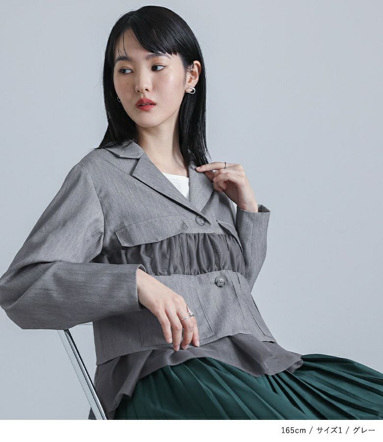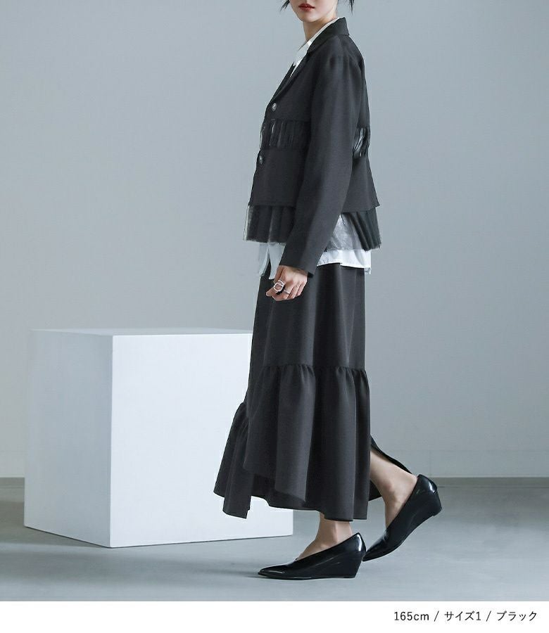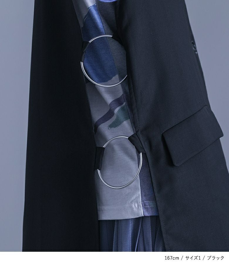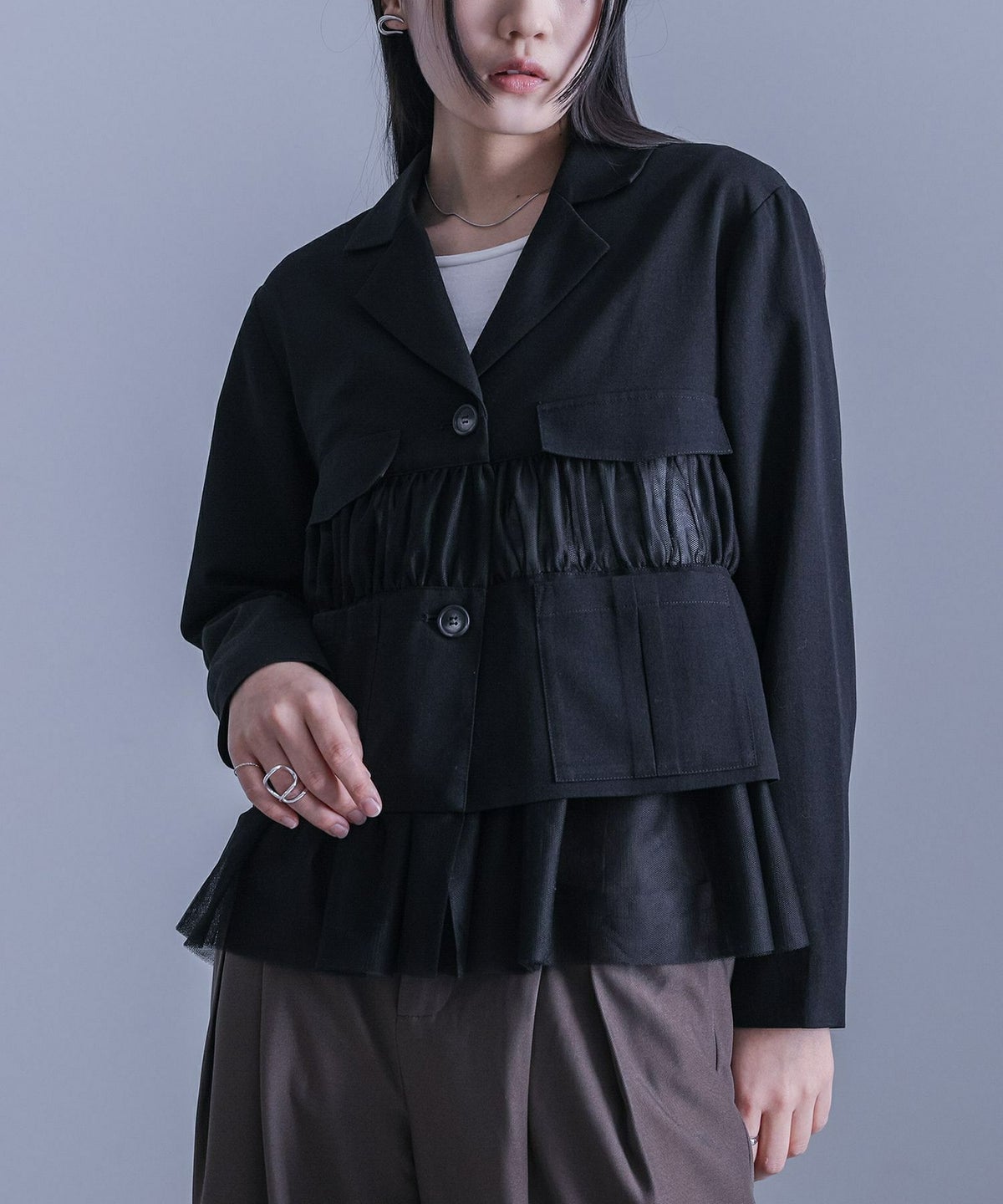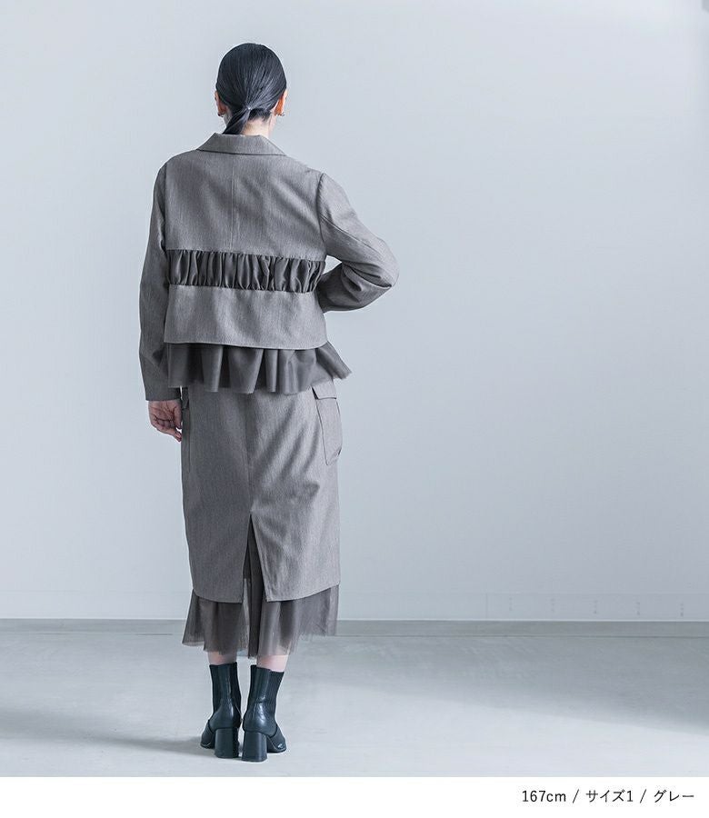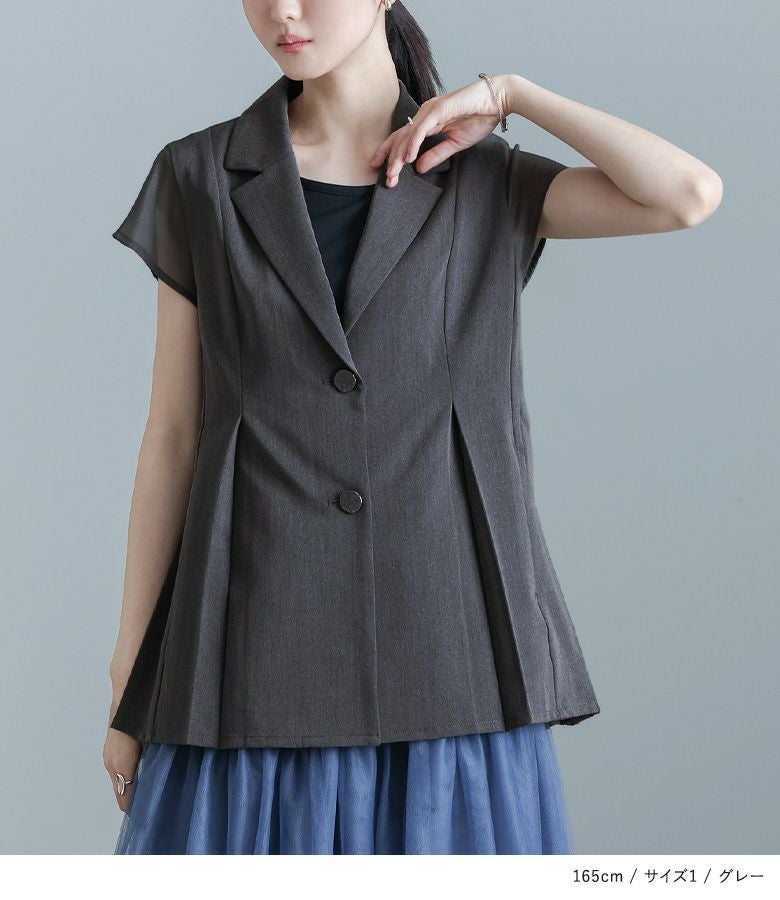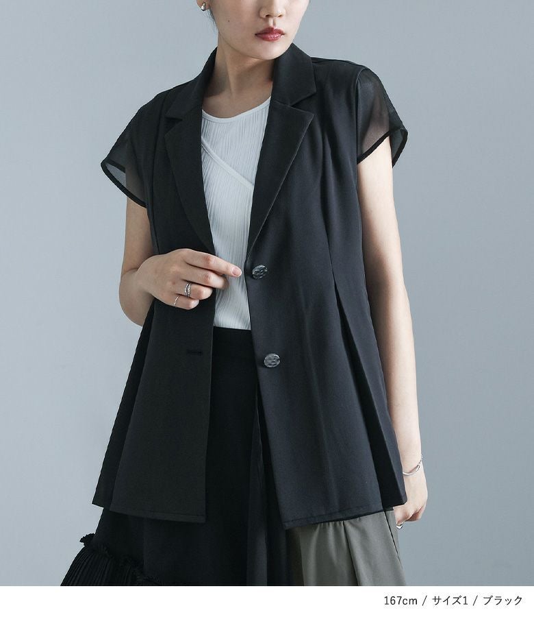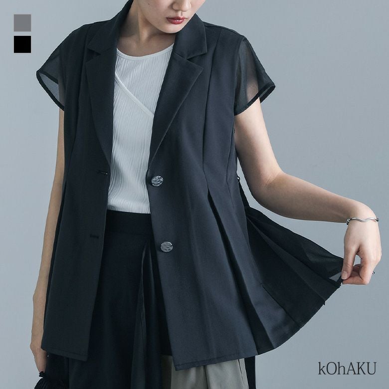 他の画像を見る 選べる2サイズ展開!チュールと布帛のドッキングデザインが目を引く、モードなジャケット。 【送料無料】『kOhAKUチュール切替ジャケット』【メール便不可】【40】 ¥ 8,980 税込 5.00 (1)