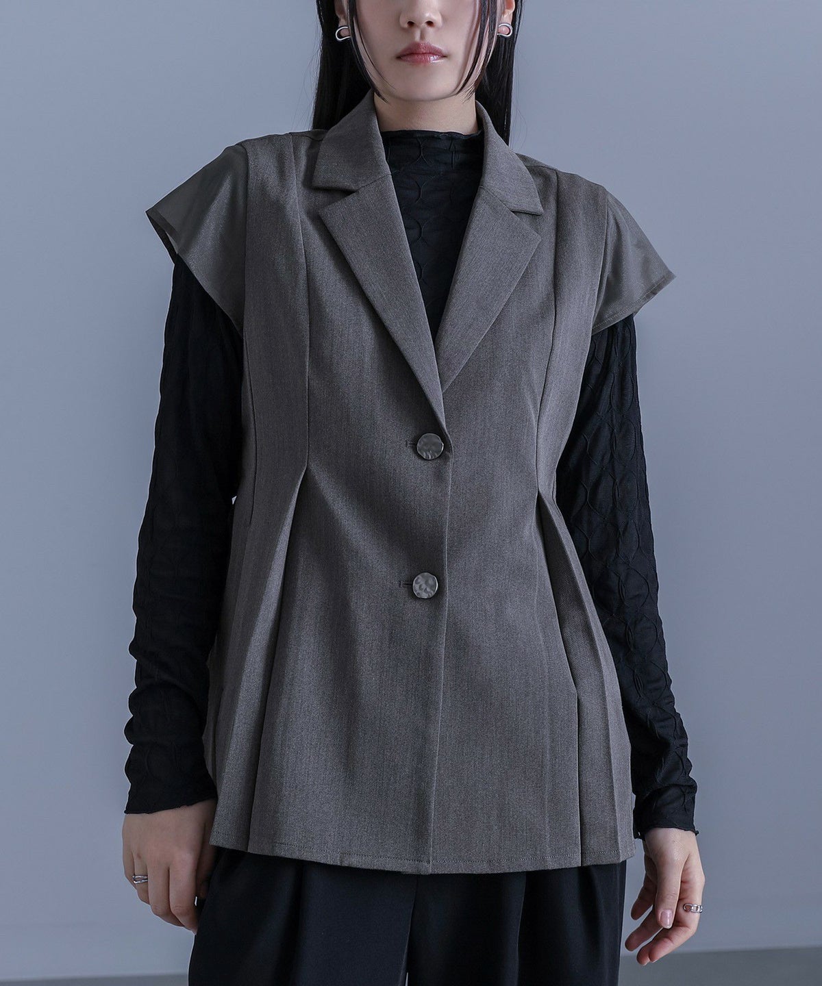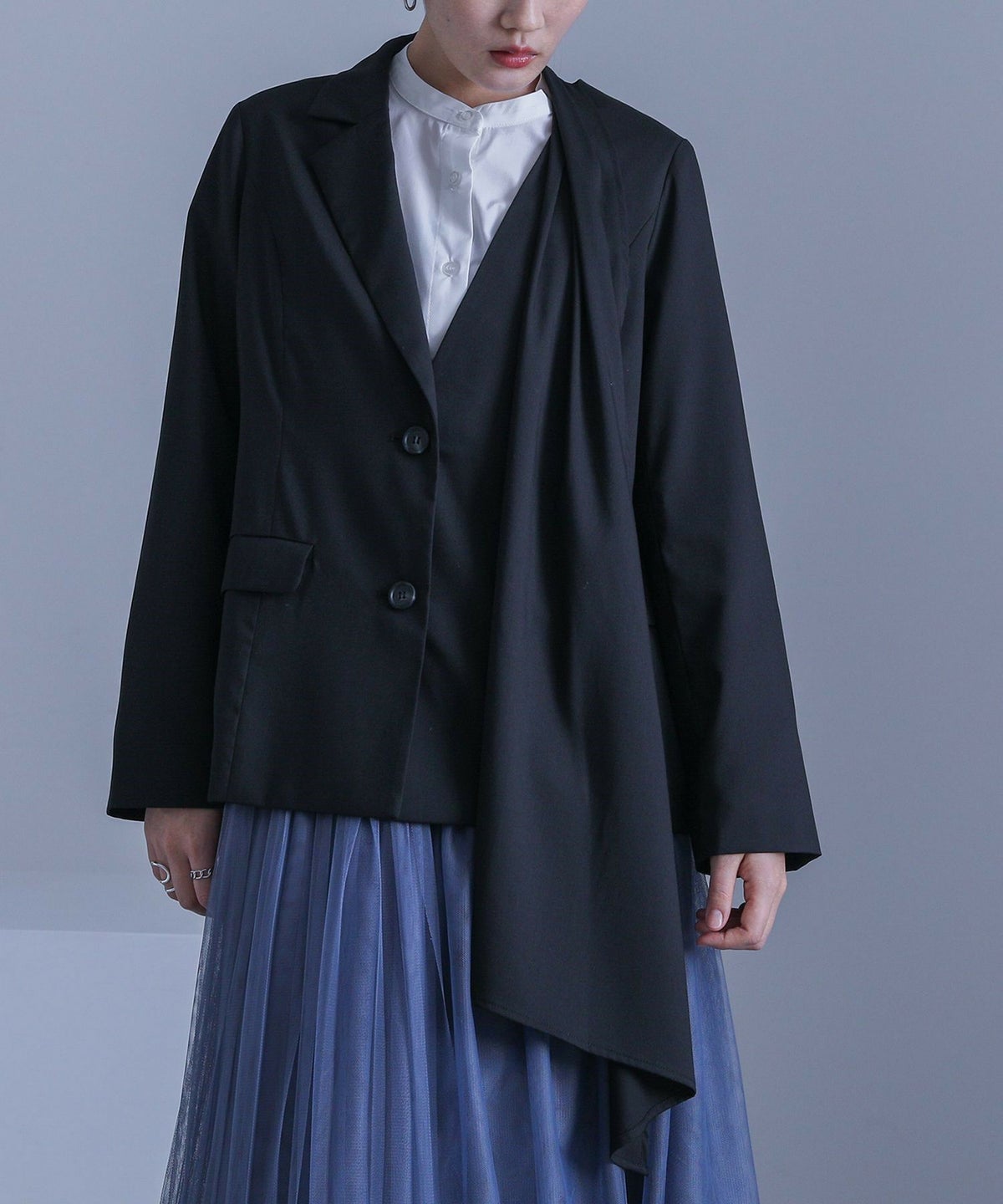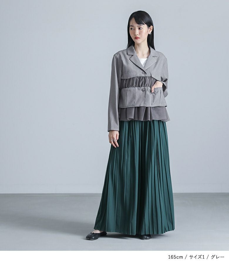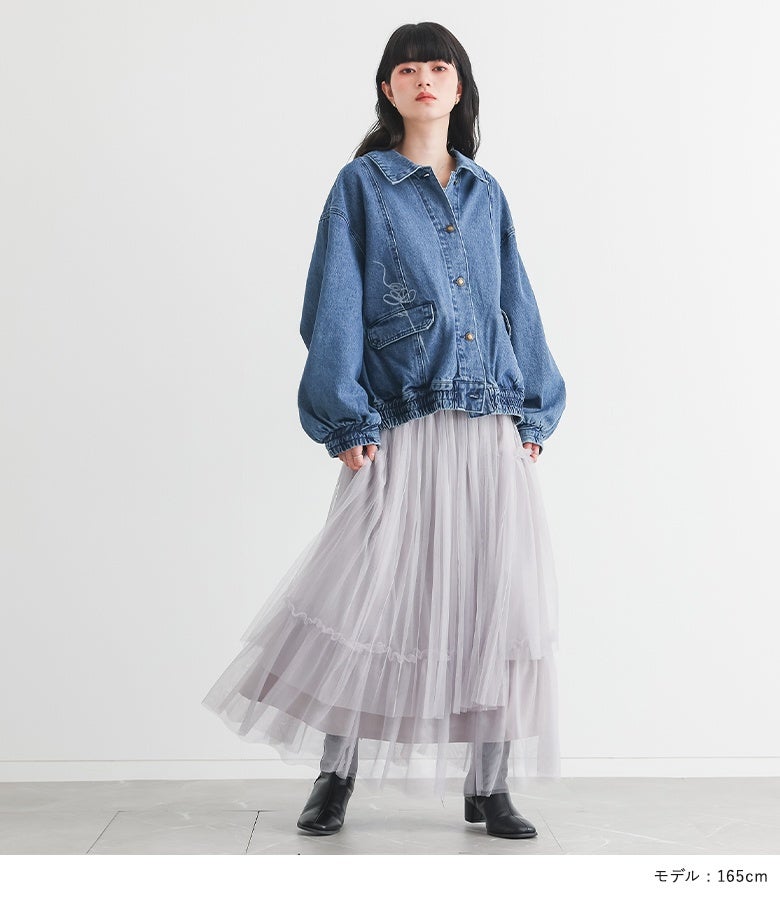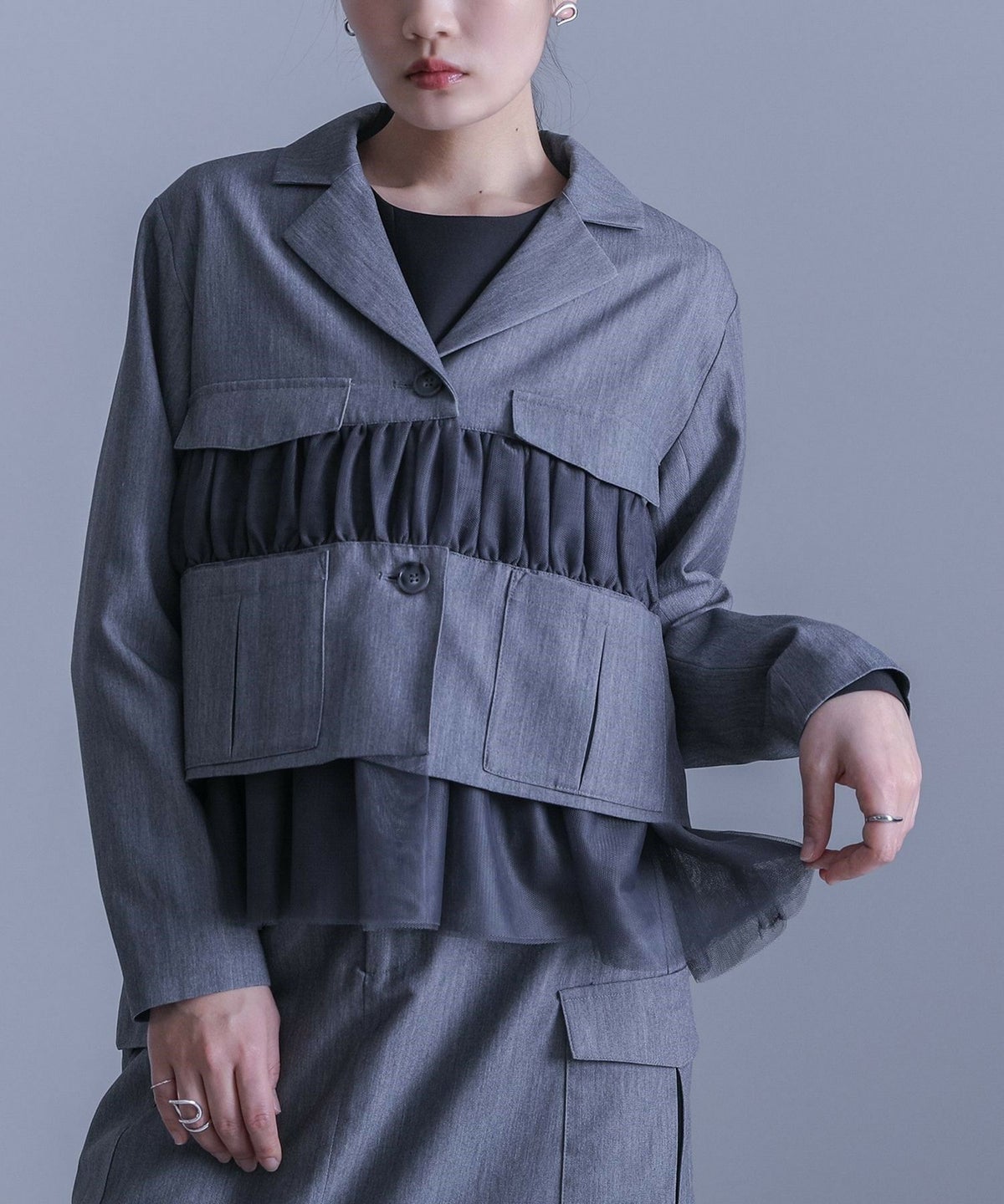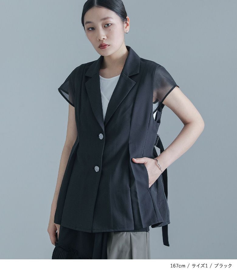 他の画像を見る 選べる2サイズ展開!チュールと布帛のドッキングデザインが目を引く、モードなジャケット。 【送料無料】『kOhAKUチュール切替ジャケット』【メール便不可】【40】 ¥ 8,980 税込 5.00 (1)