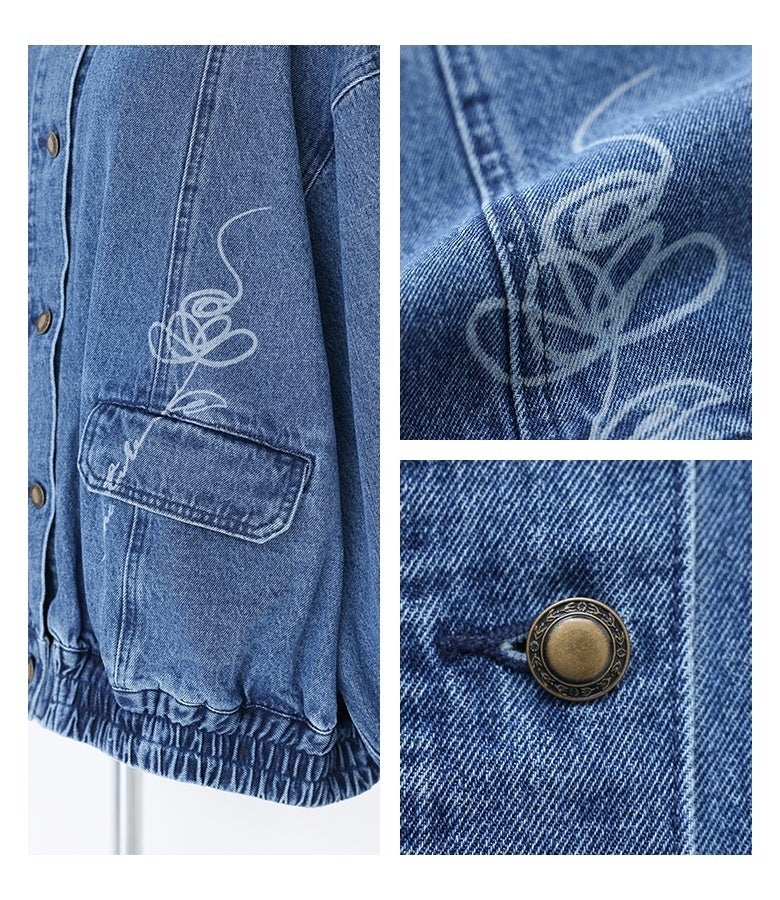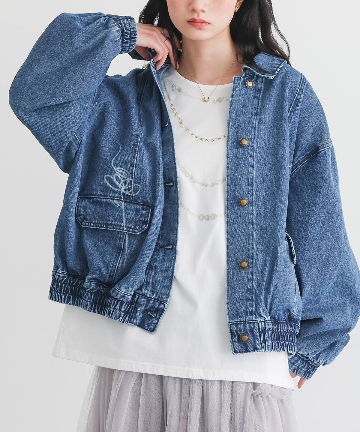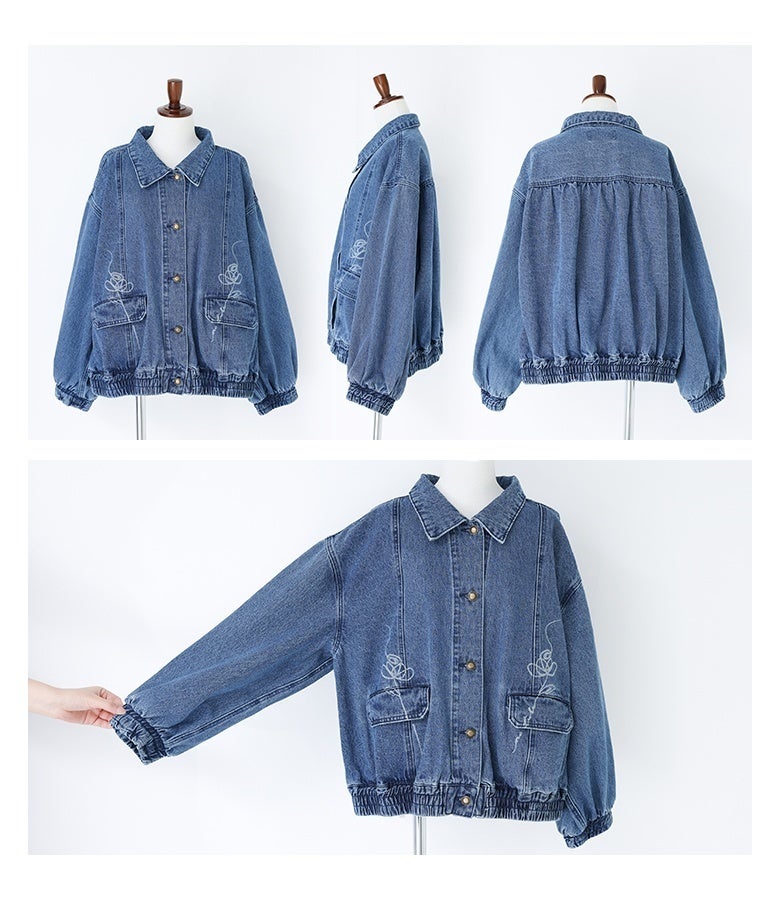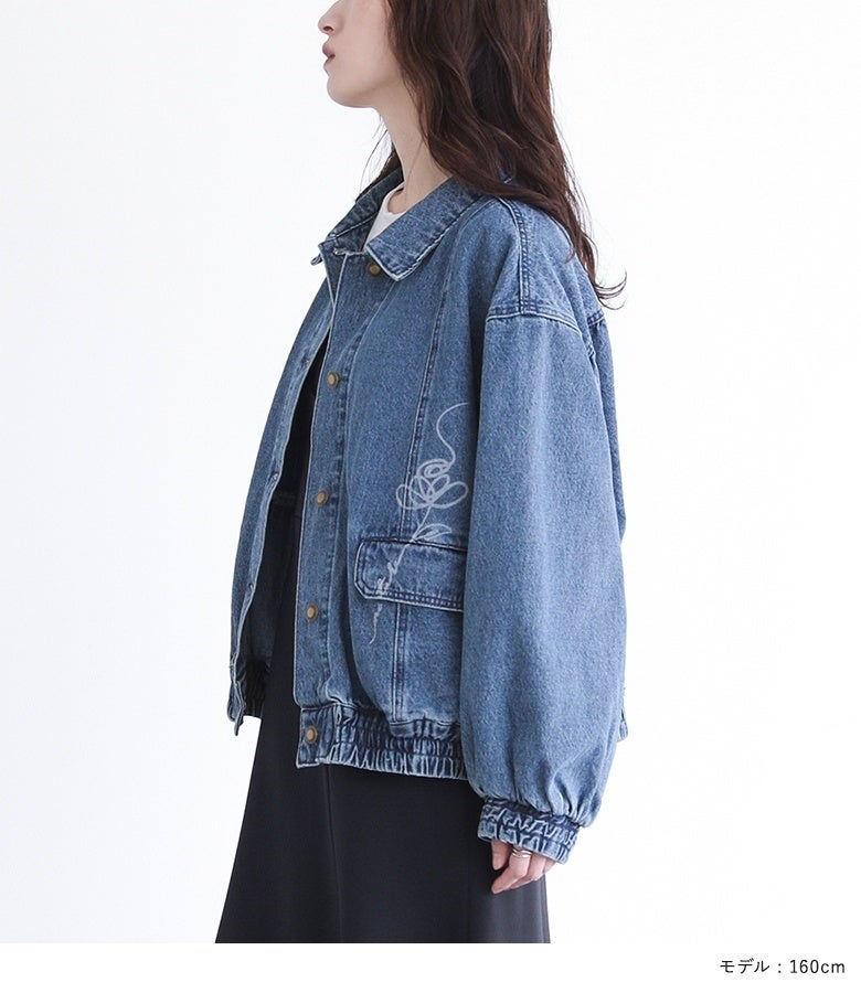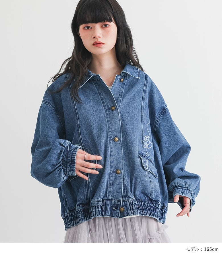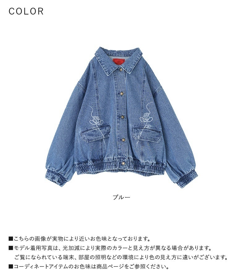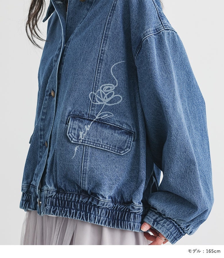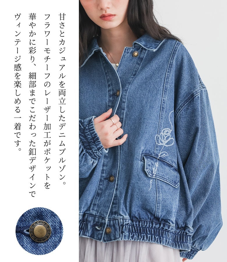 他の画像を見る オリジナルのフラワーモチーフをレーザー加工でポケット部分にほどこしたデニムブルゾン。 【送料無料】『somari imagination花柄モチーフデニムブルゾン』【メール便不可】【30】 ¥ 8,980 税込 5.00 (1)