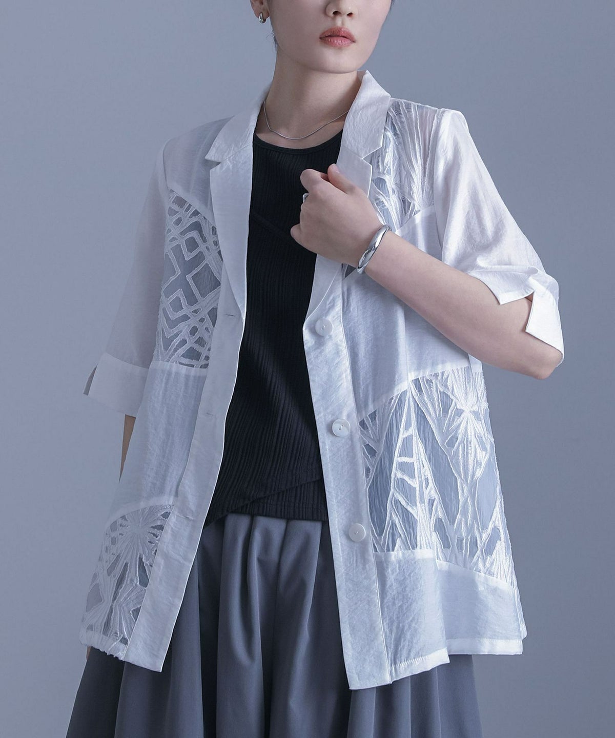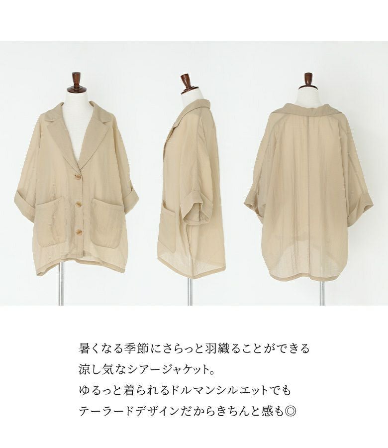 他の画像を見る 期間限定セール★特別SALE開催中!! 『50%OFFセール★OUKA SELECTシアーハーフスリーブジャケット』※返品交換不可※【メール便不可】【20】 定価 ¥ 7,590 のところ ¥ 3,795 税込 (0)