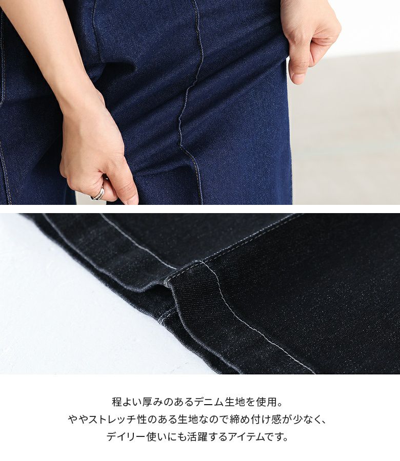 ややストレッチ性のあるデニム生地を使用。程良い厚みの生地感で、コーディネート次第で季節長く着回していただけます。