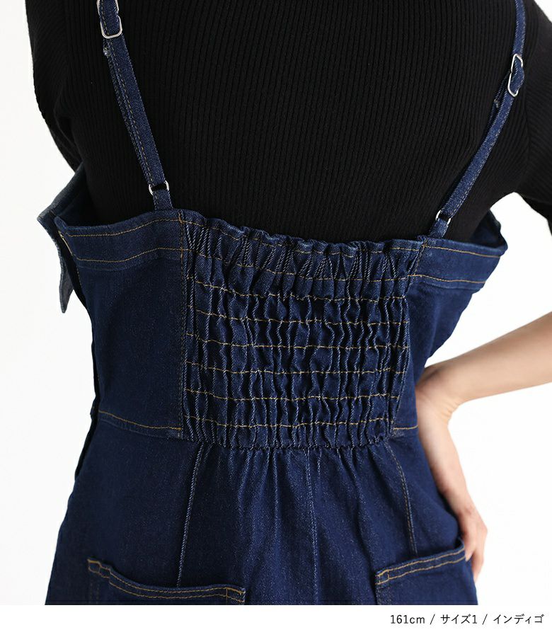 スタイルアップを叶えるデニムサロペット。