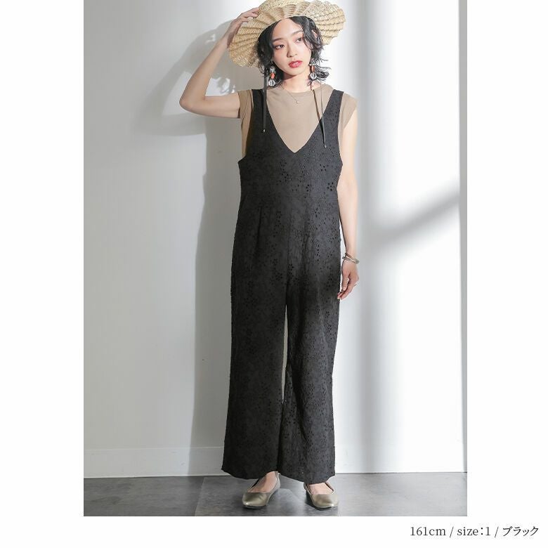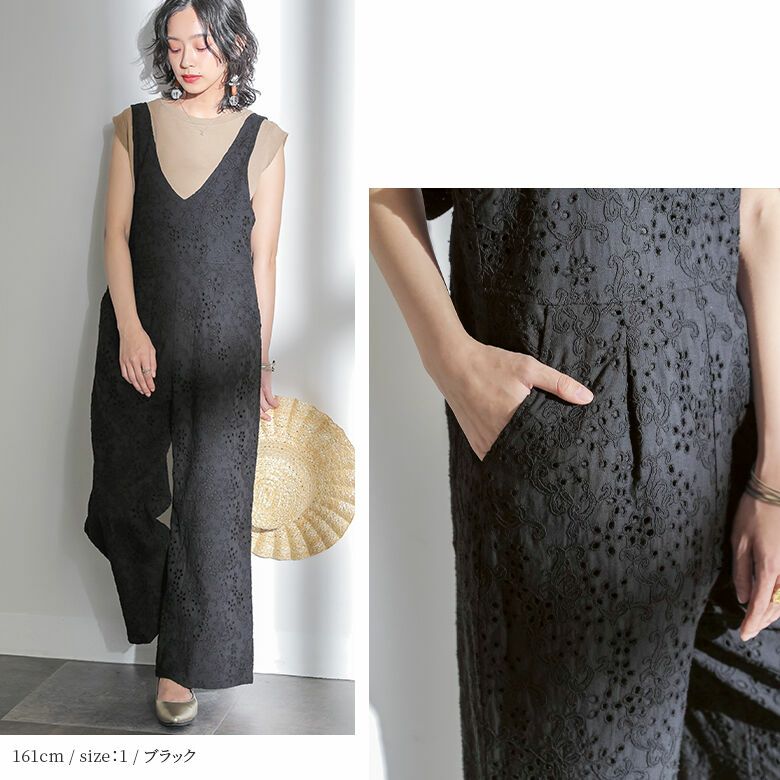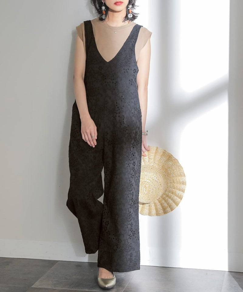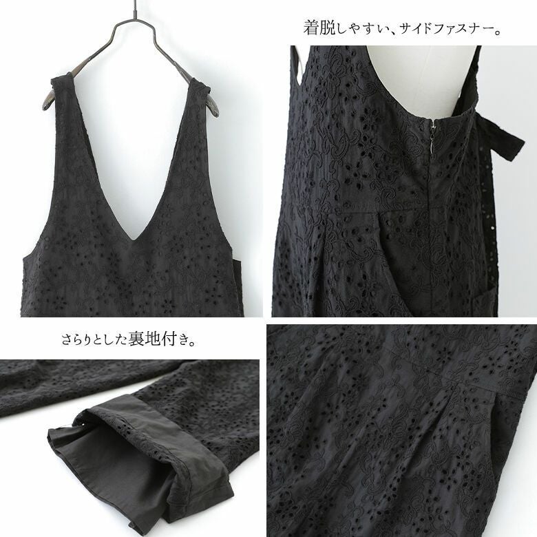 送料無料★贅沢なコットンレースで華やかに魅せるサロペット♪