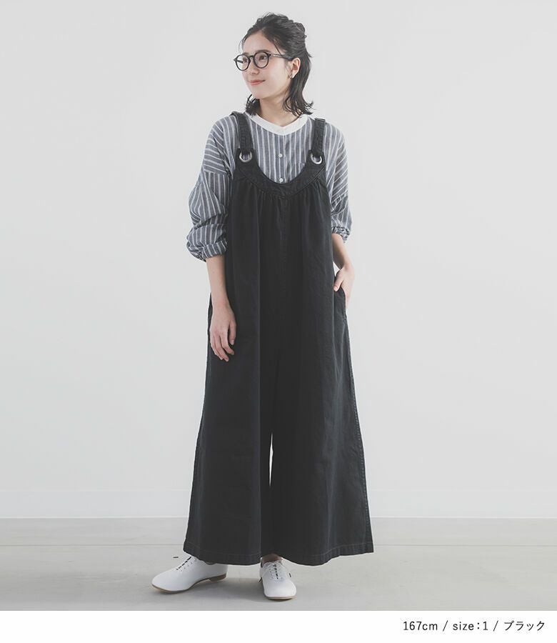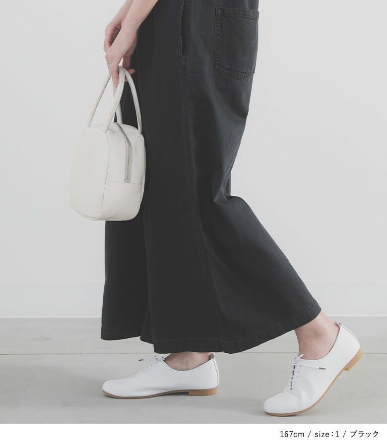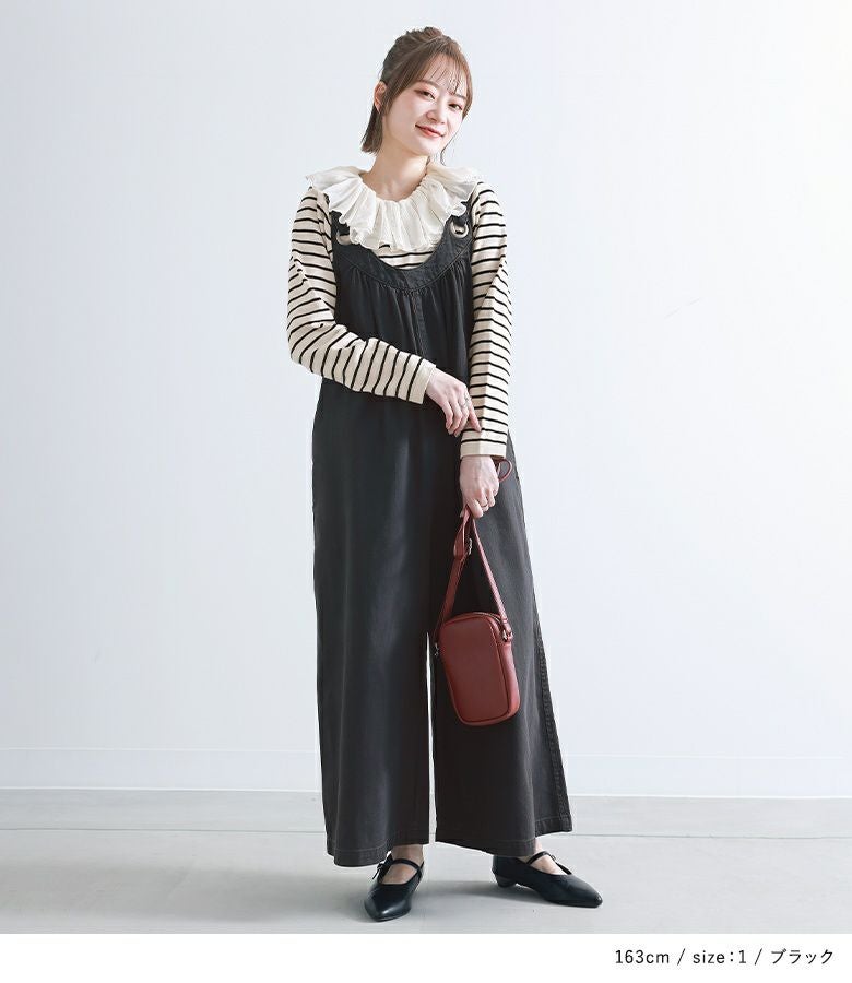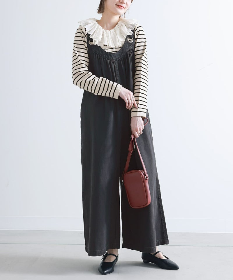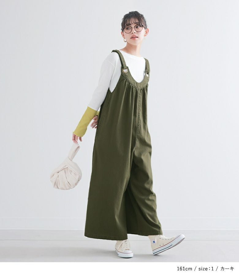 着丈はアジャスターを最長にしてかかとが隠れる丈でした。全体的にゆったりしていますが、大きすぎず落ち感のある生地なのですっきりシルエットで着られました。