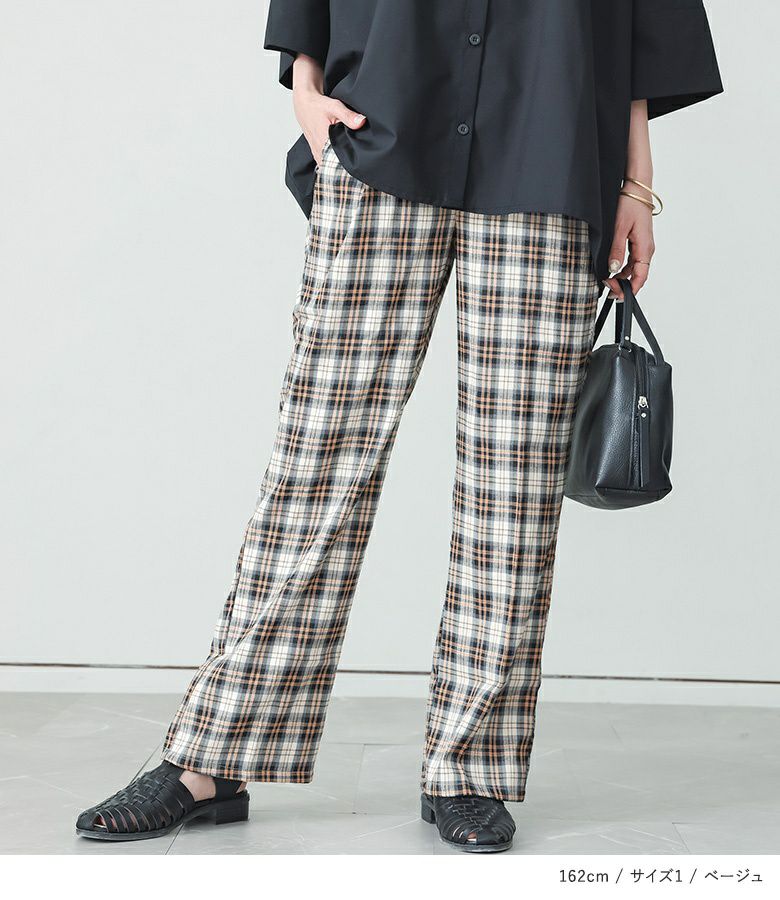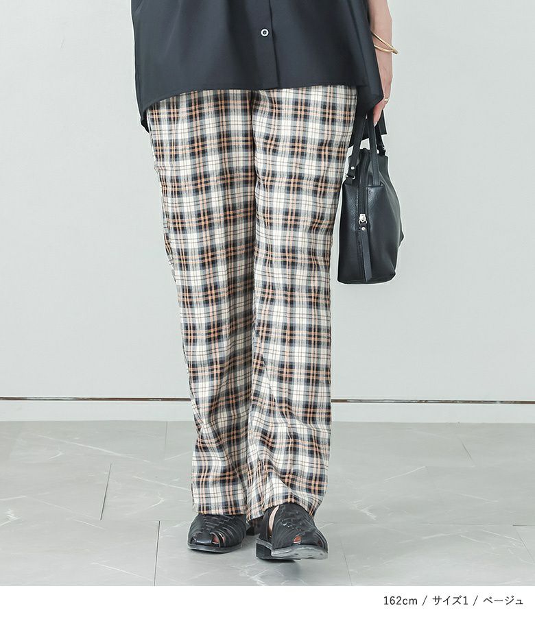 【普段着用】 Tops: M Bottoms: M | 【1】 着丈(ウエスト穿き):くるぶしが隠れる位 ウエスト:ややゆったり ヒップ:ややゆったり 太もも周り:ややゆったり 全体:スッキリ