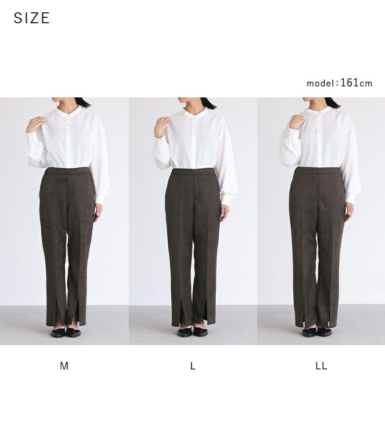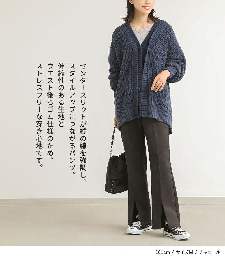 選べるM L LLサイズ展開!センタースリットデザインのセミフレアパンツ。