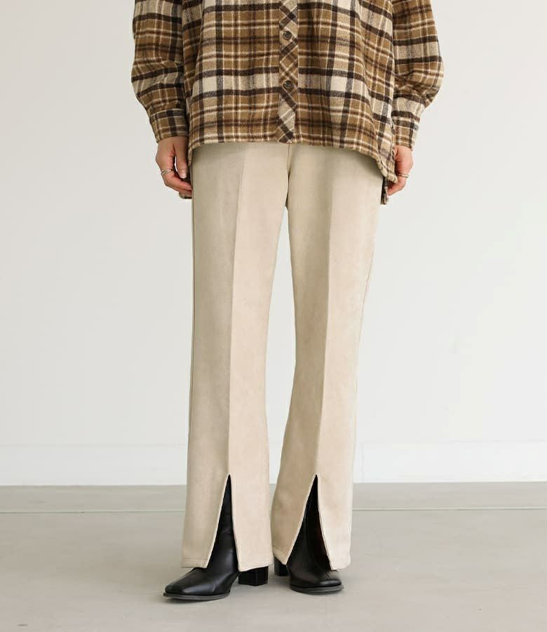 『フェイクスエードセミフレアパンツ』