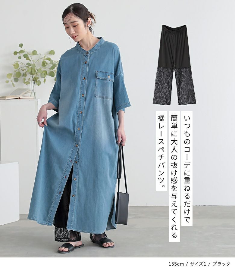 いつものコーデに重ねるだけで簡単に大人の抜け感を演出する裾レースぺチパンツ。プラスワンでレイヤードスタイルがお洒落に華やぐ一着です。