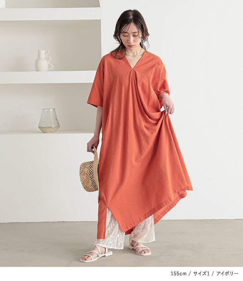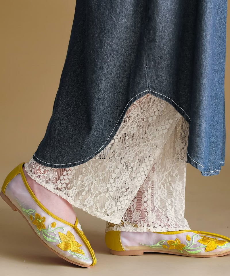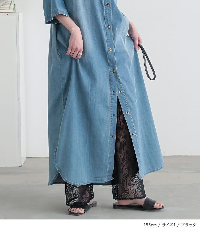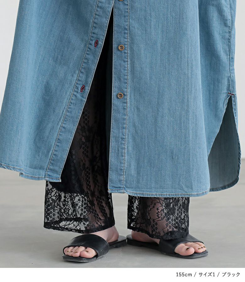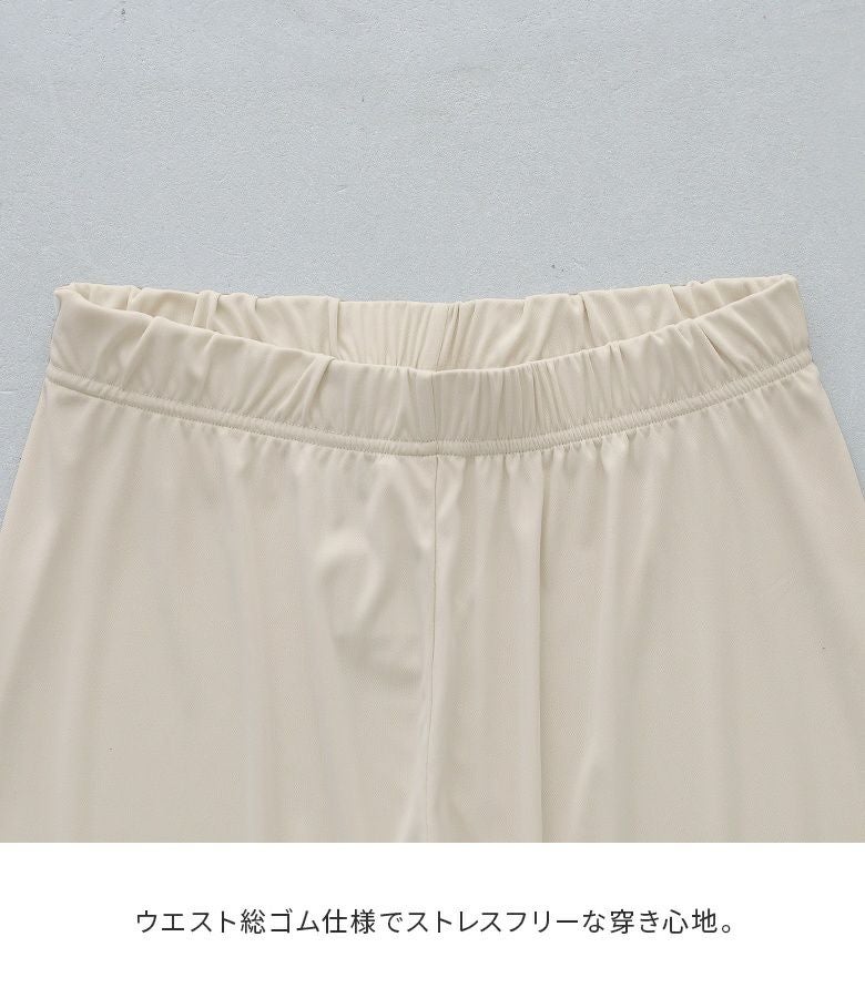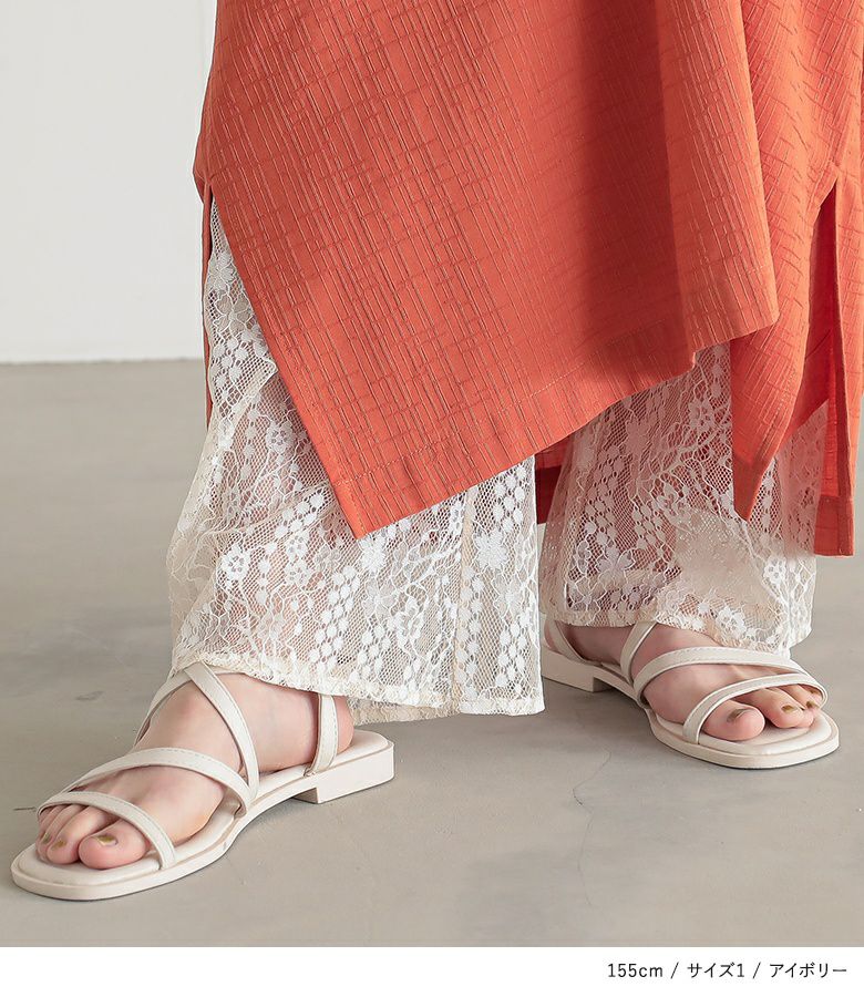 透けすぎない繊細な柄のレース生地は重ね着しても重たく見えないところが魅力。膝上まではさらりとした伸縮性のあるスムース生地でロングシーズン着用いただけます。