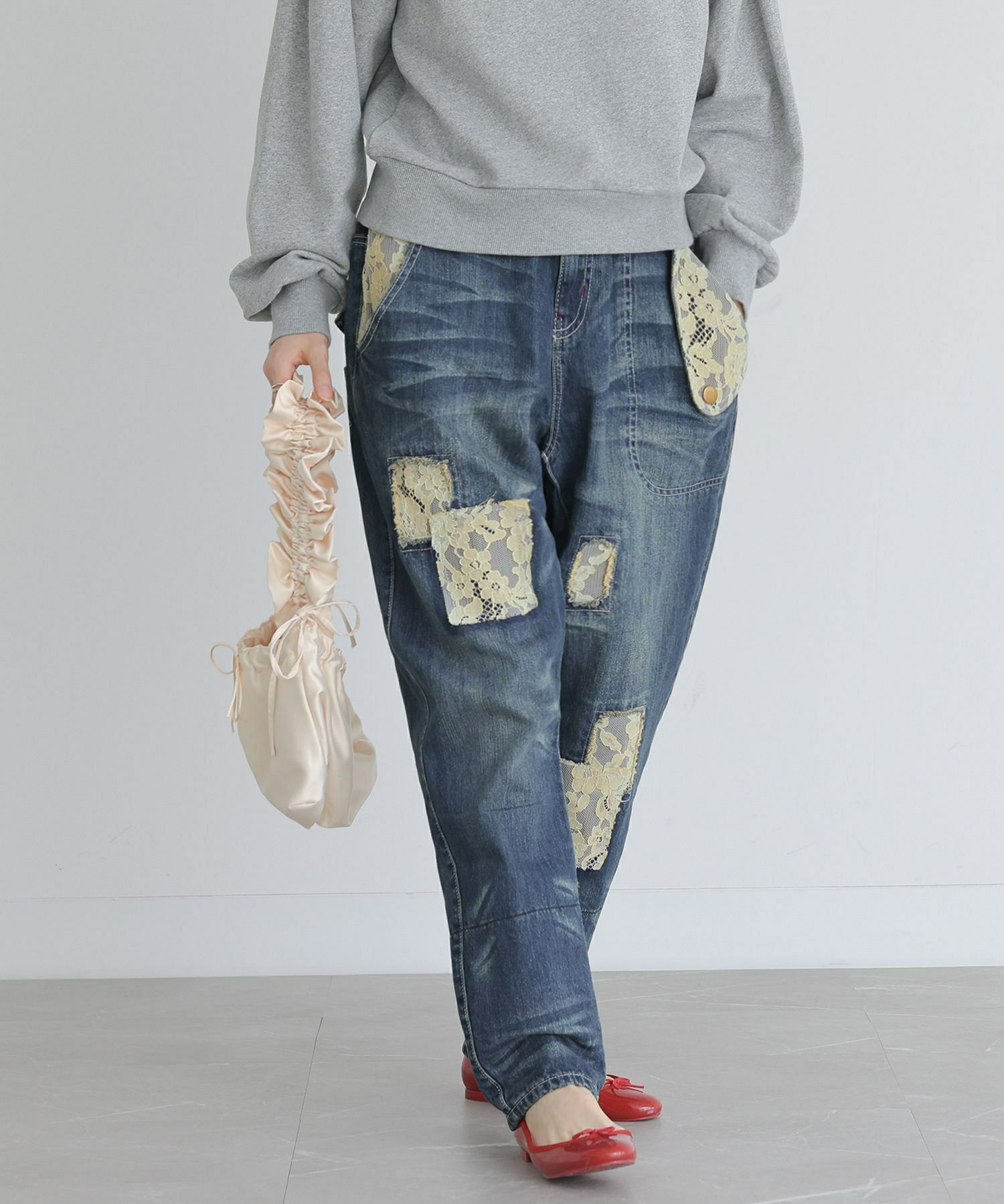 他の画像を見る 選べるM~3Lサイズ展開!ヴィンテージ感漂うレースデザインデニム♪ 【送料無料】『somari imaginationレースサルエルデニムパンツ』【メール便不可】 ¥ 9,900 税込 4.67 (21)