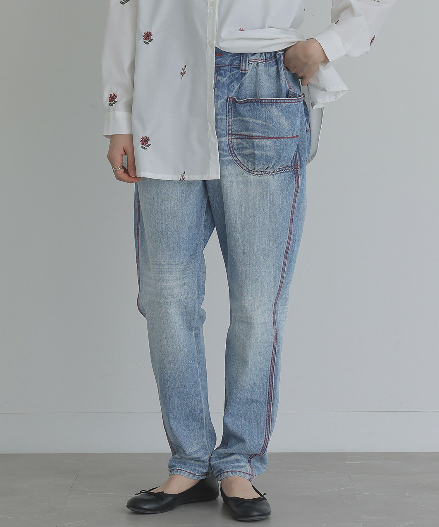 他の画像を見る 選べるM~3Lサイズ展開!世界観あふれる赤ステッチハイウエストデニム♪ 『somari imagination赤ステッチサルエルdesignデニム』【メール便不可】【20】 ¥ 7,980 税込 4.00 (6)