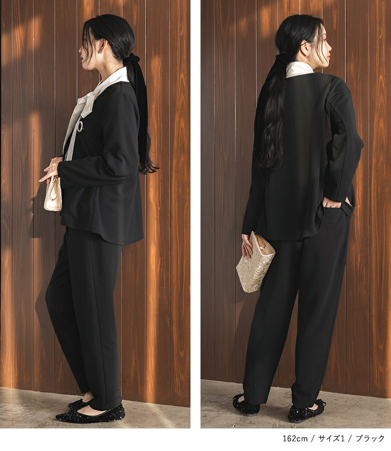 他の画像を見る 選べる2サイズ展開!上質感のあるストレッチ入り生地を使用した、ジャケット×パンツのセットアップ。 【送料無料】『n'OrLABELカットジョーゼットドルマンジャケット&テーパードパンツセットアップ』【メール便不可】【30】 ¥ 9,980 税込 (0)