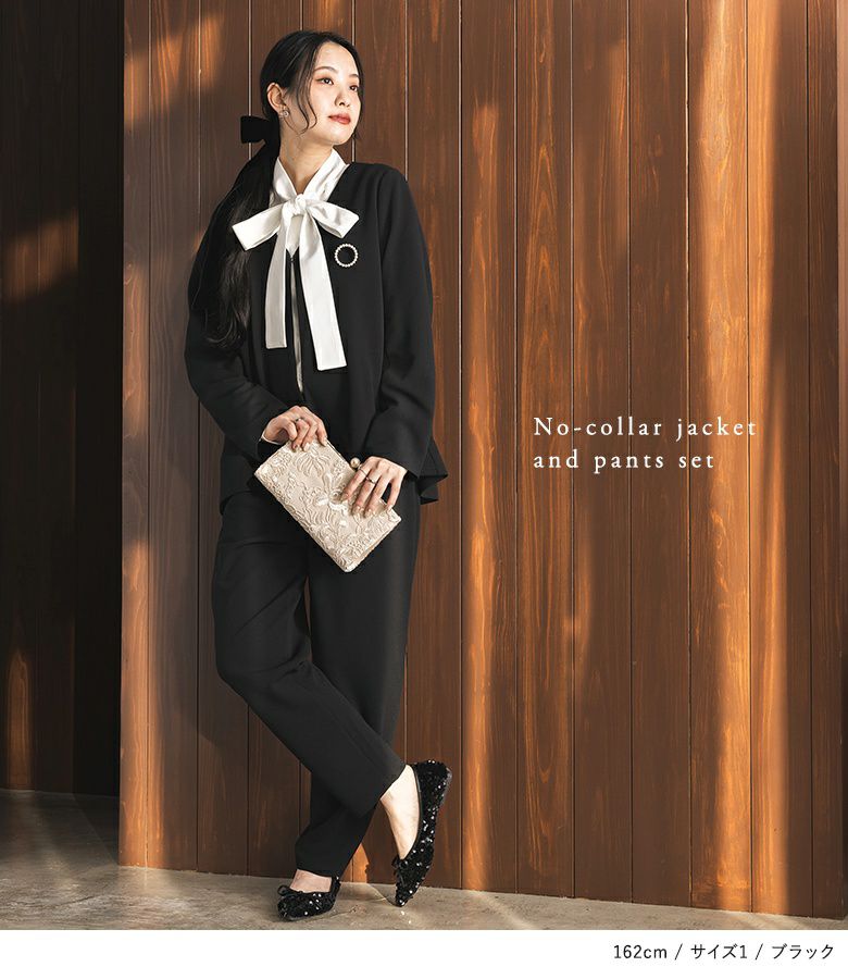他の画像を見る 選べる2サイズ展開!特別な日の洗練スタイル♪ジャケット×パンツのセットアップ。 【送料無料】『n'OrLABELフェイクパール付きノーカラージャケットセットアップ』【メール便不可】【100】 ¥ 12,980 税込 3.50 (2)
