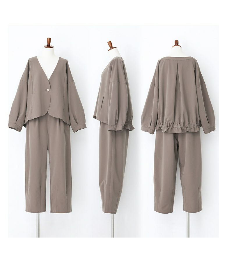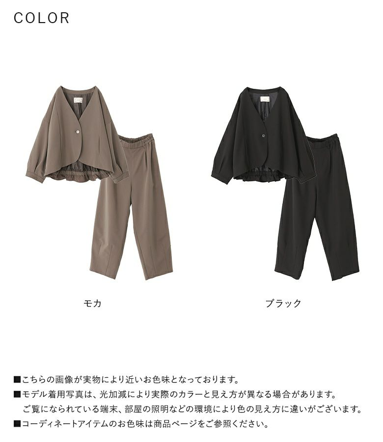 他の画像を見る 選べる2サイズ展開!後ろフリルデザインがポイントジャケットとコクーンパンツのセットアップ。 【送料無料】『somari imaginationノーカラージャケットコクーンパンツセットアップ』【メール便不可】【30】 ¥ 13,990 税込 (0)